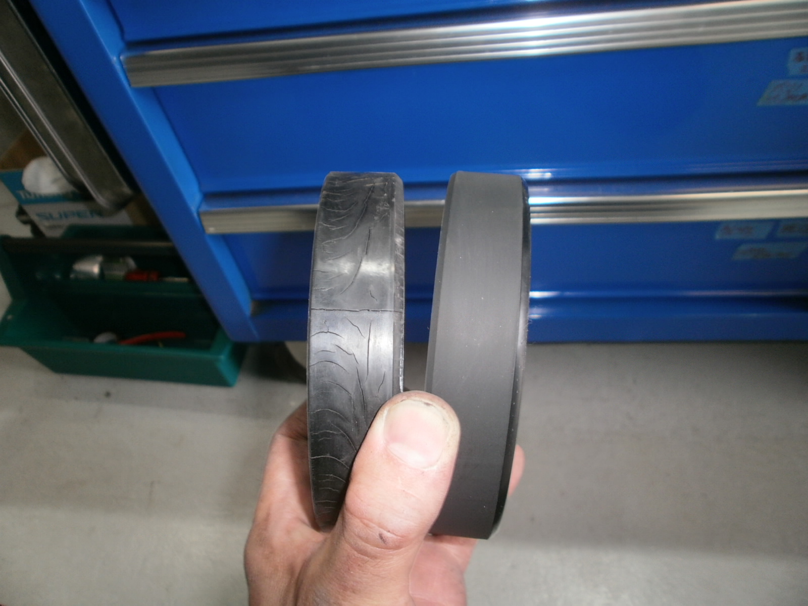 左新品、右がついていた部品、かなり汚れています。交換してリフレッシュです(#^^#)