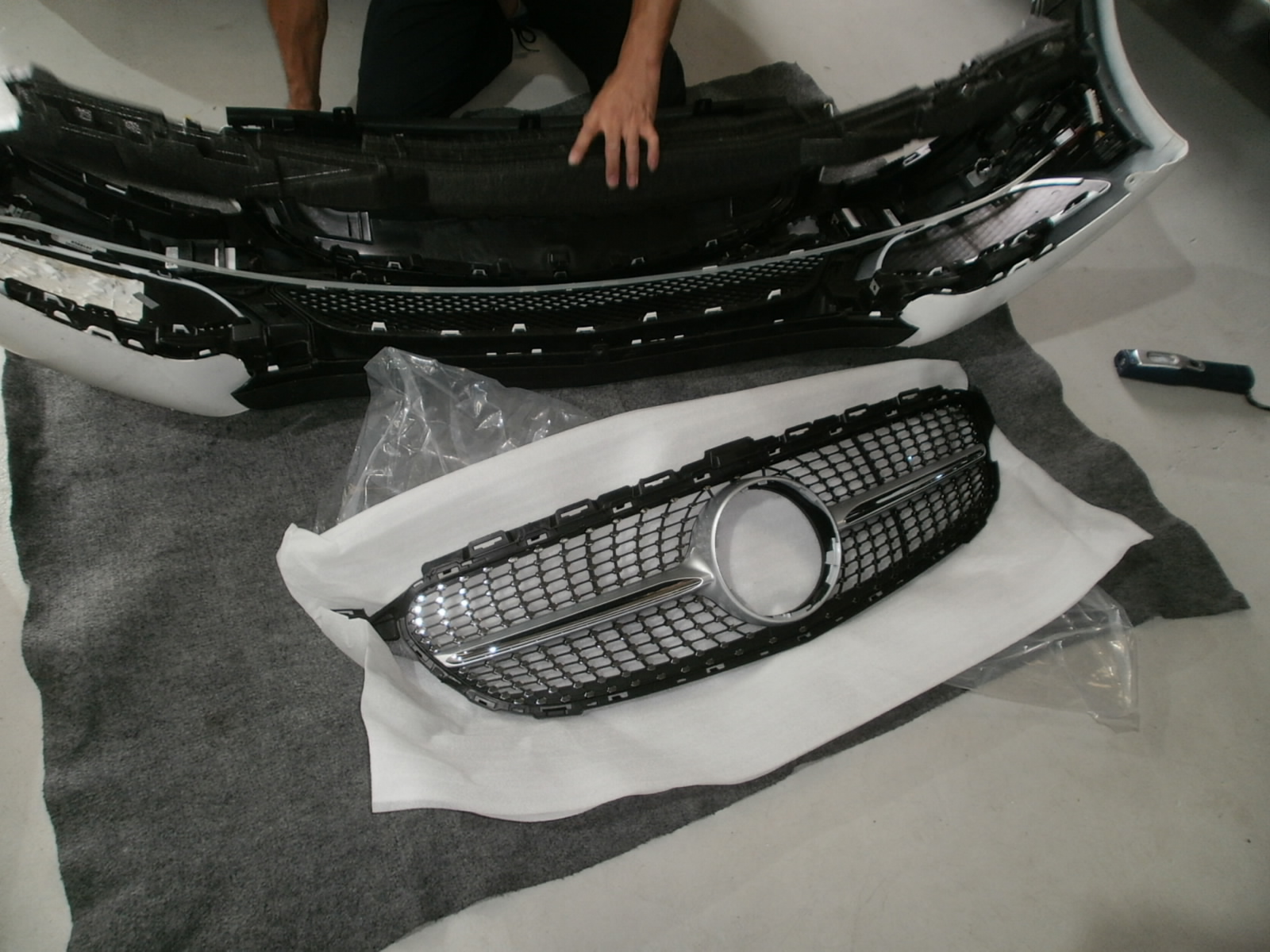 H様 CLS350 ホイール取付、ドライブレコーダー・レーダー取付、ナンバー灯LED化にてご入庫です。