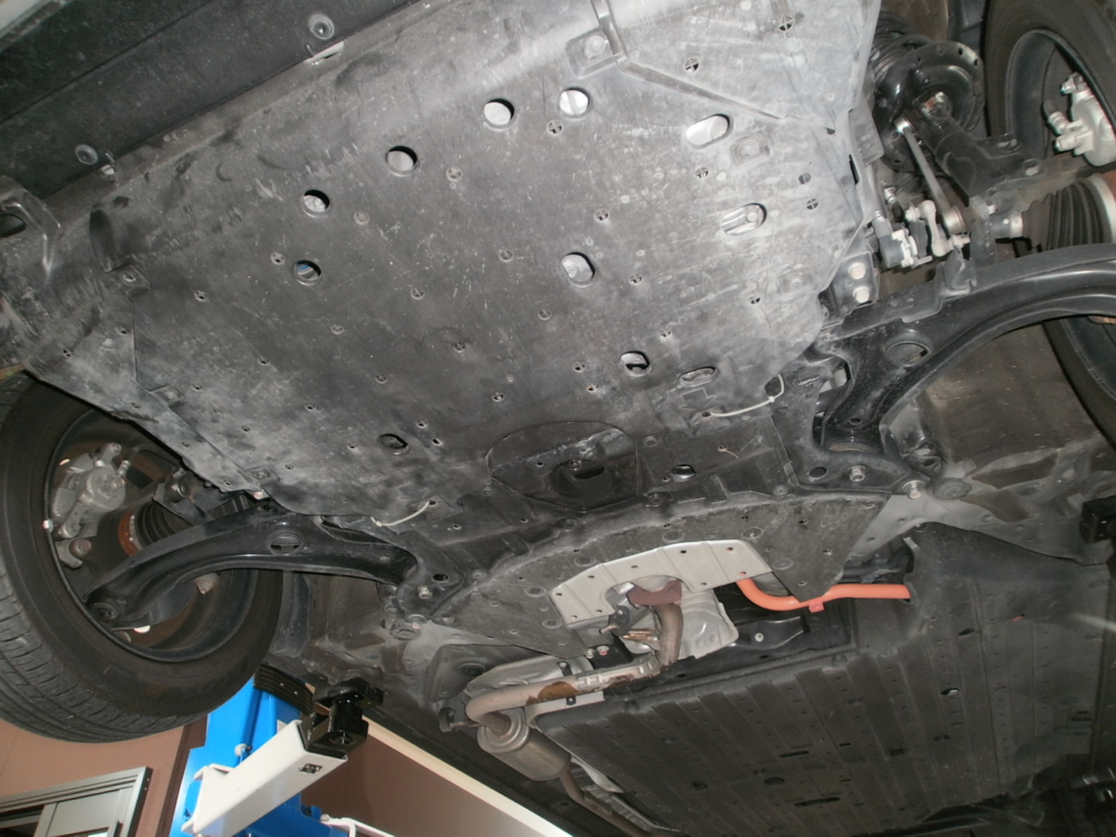 Y様 フィットHV 下廻りを何かにぶつけてしまわれたので、安全の為、下廻り点検させていただきました。