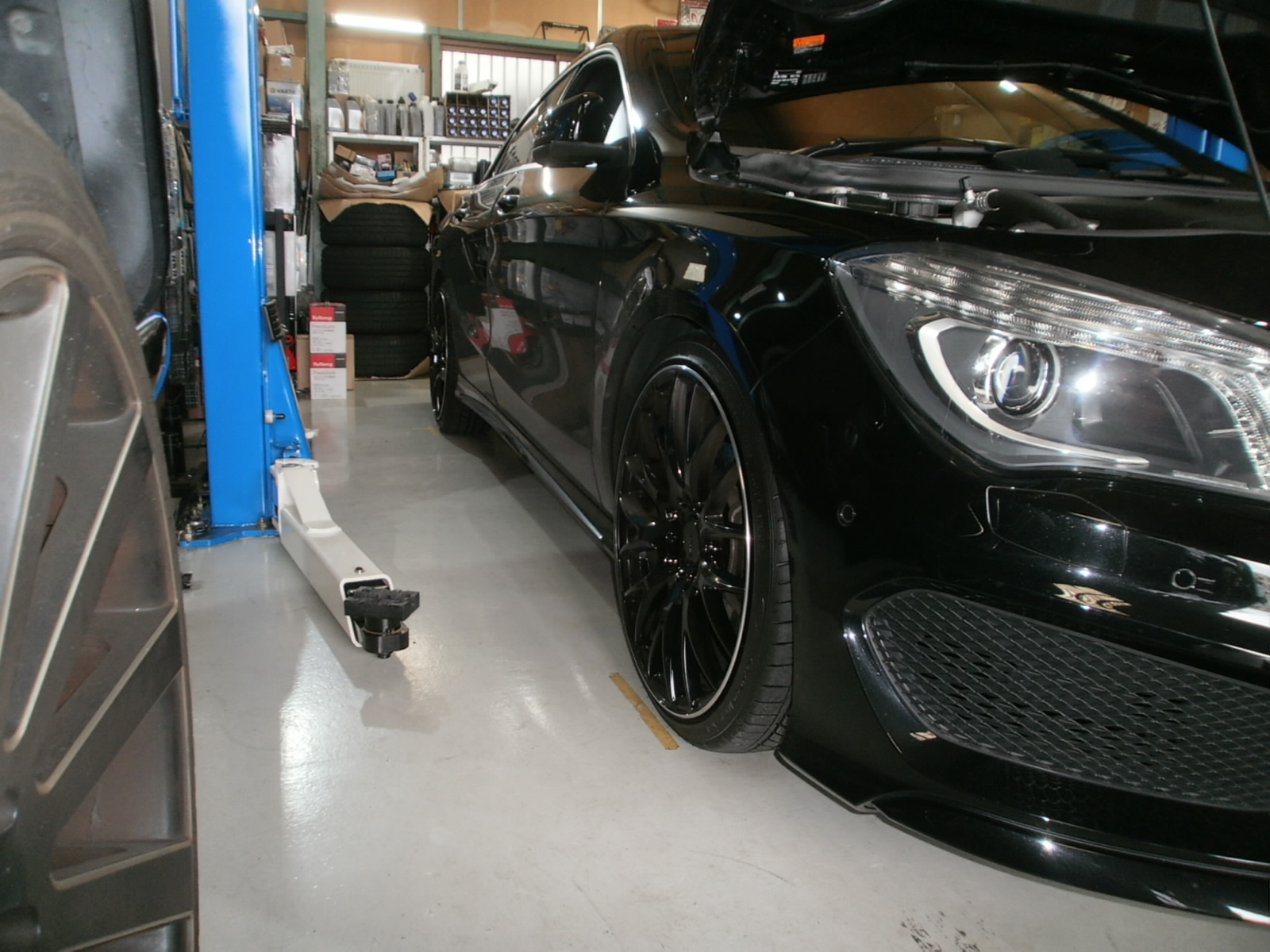 Y様 CLA180 ダウンサス取付、4輪アライメント調整にてご入庫です。