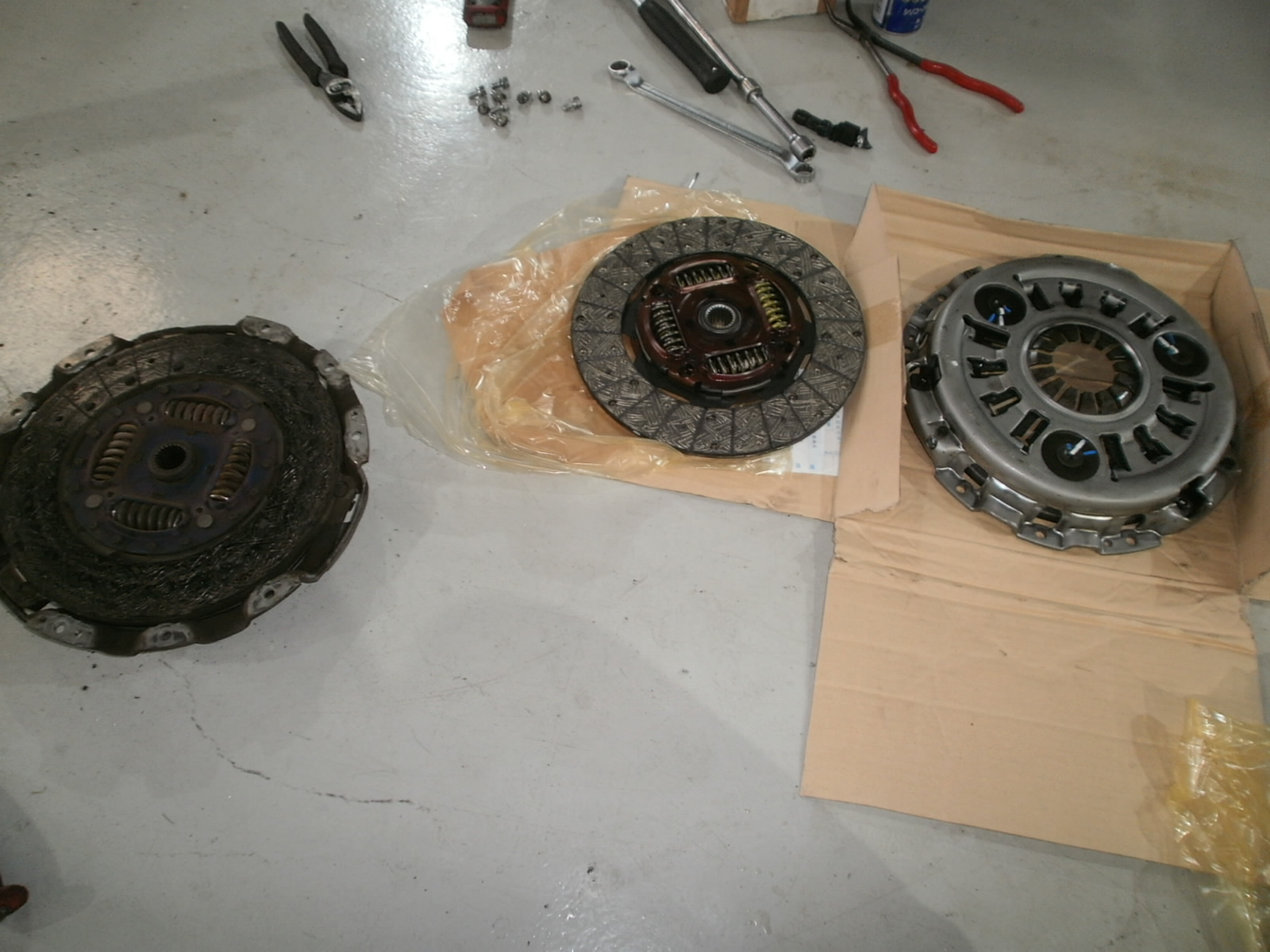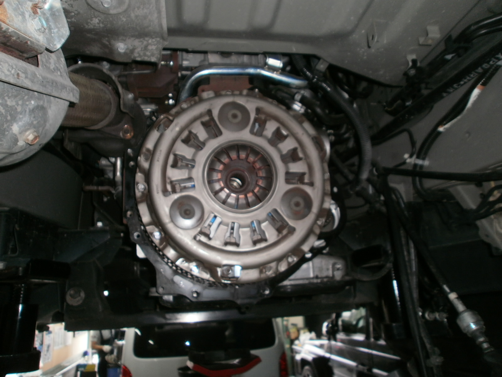 ミッションをおろして、クラッチディスク・クラッチカバー・ベアリングなどを交換していきます。
