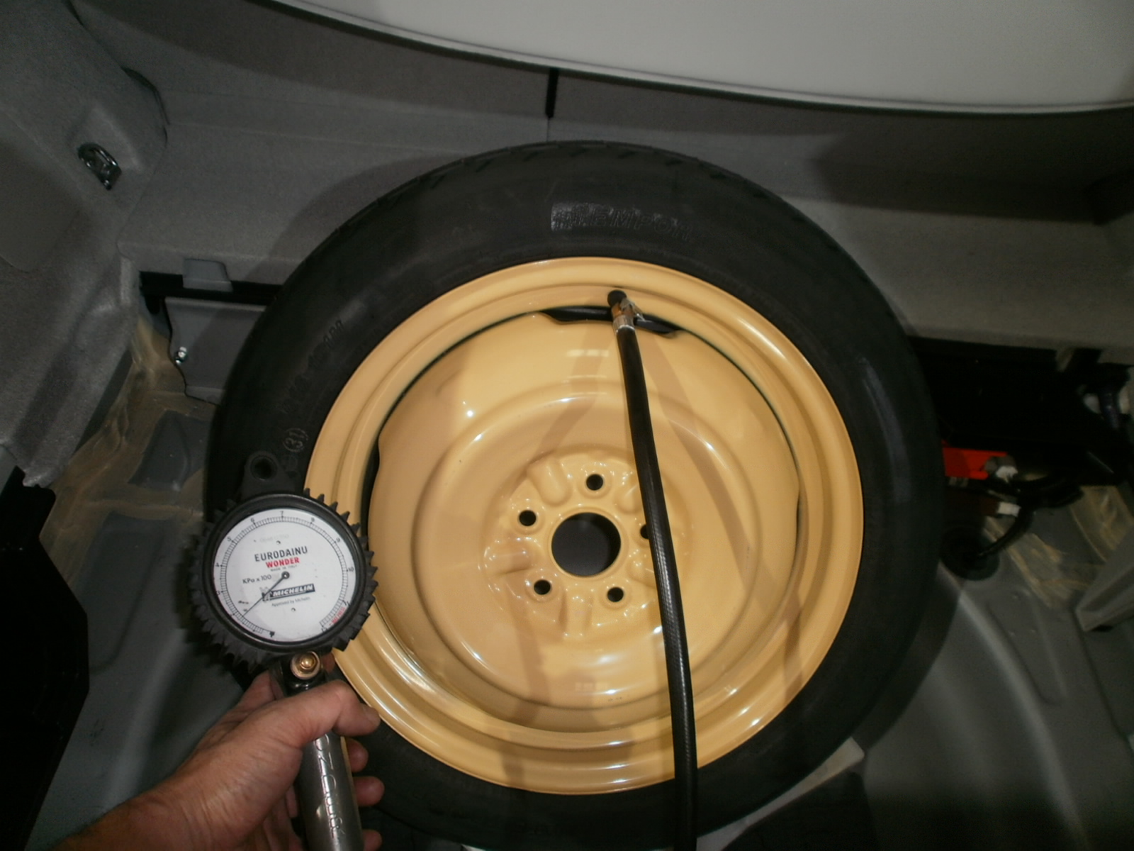 非常時使用するかもしれないスペアタイヤの空気圧もしっかり点検。使用しない事が一番なんですけどねw