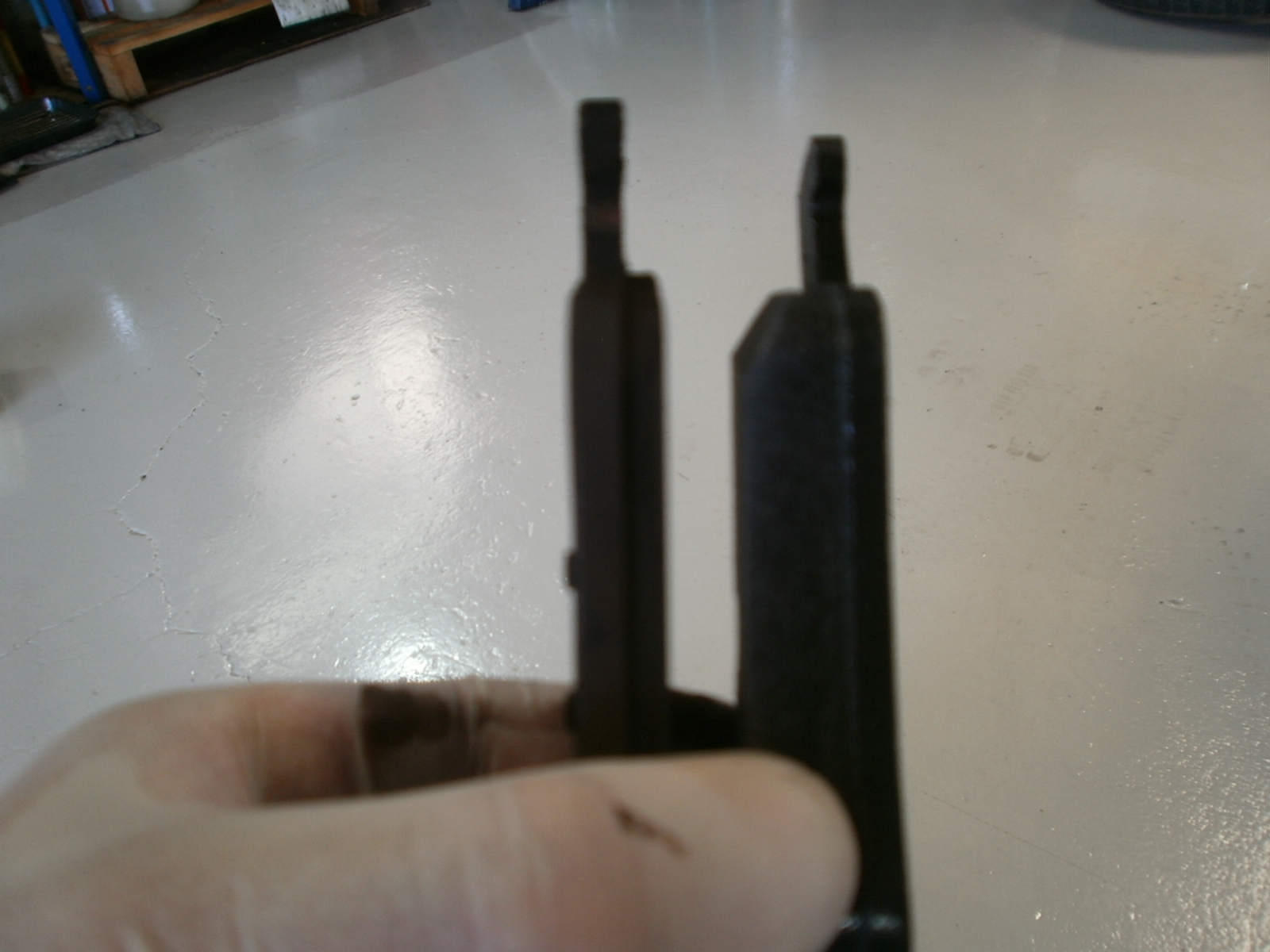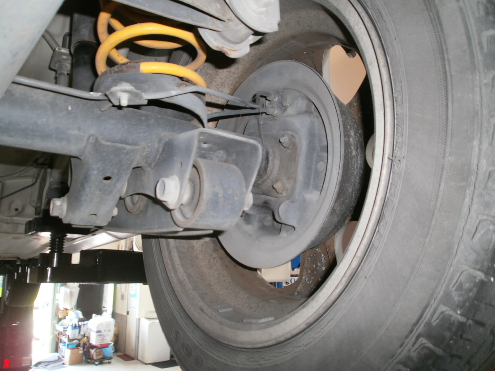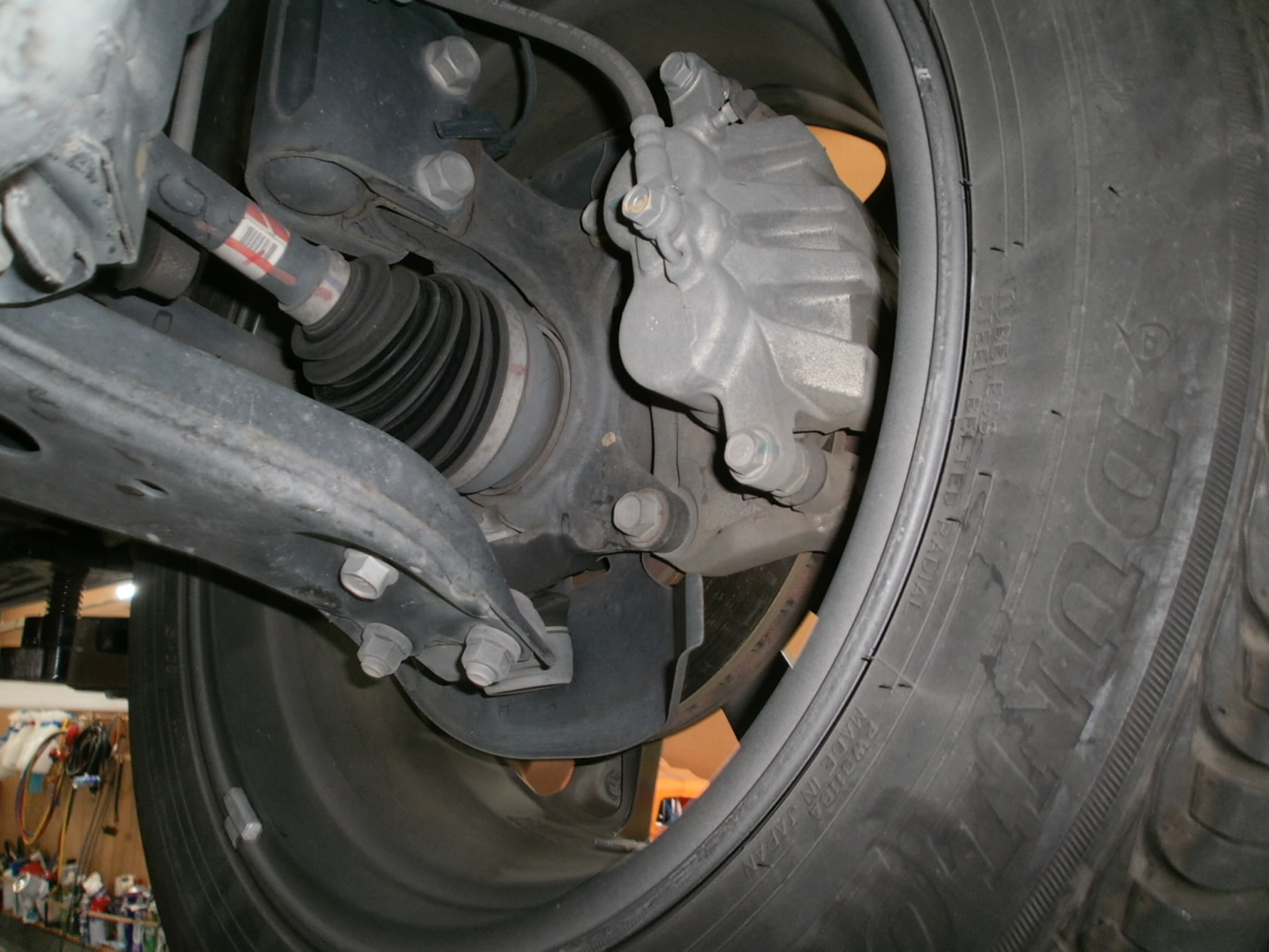 リア、ブレーキローター・ブレーキパッド・センサーの交換です。パッド・ローター残量もこの通り。ローター新品だと気持ちいいですよね~!