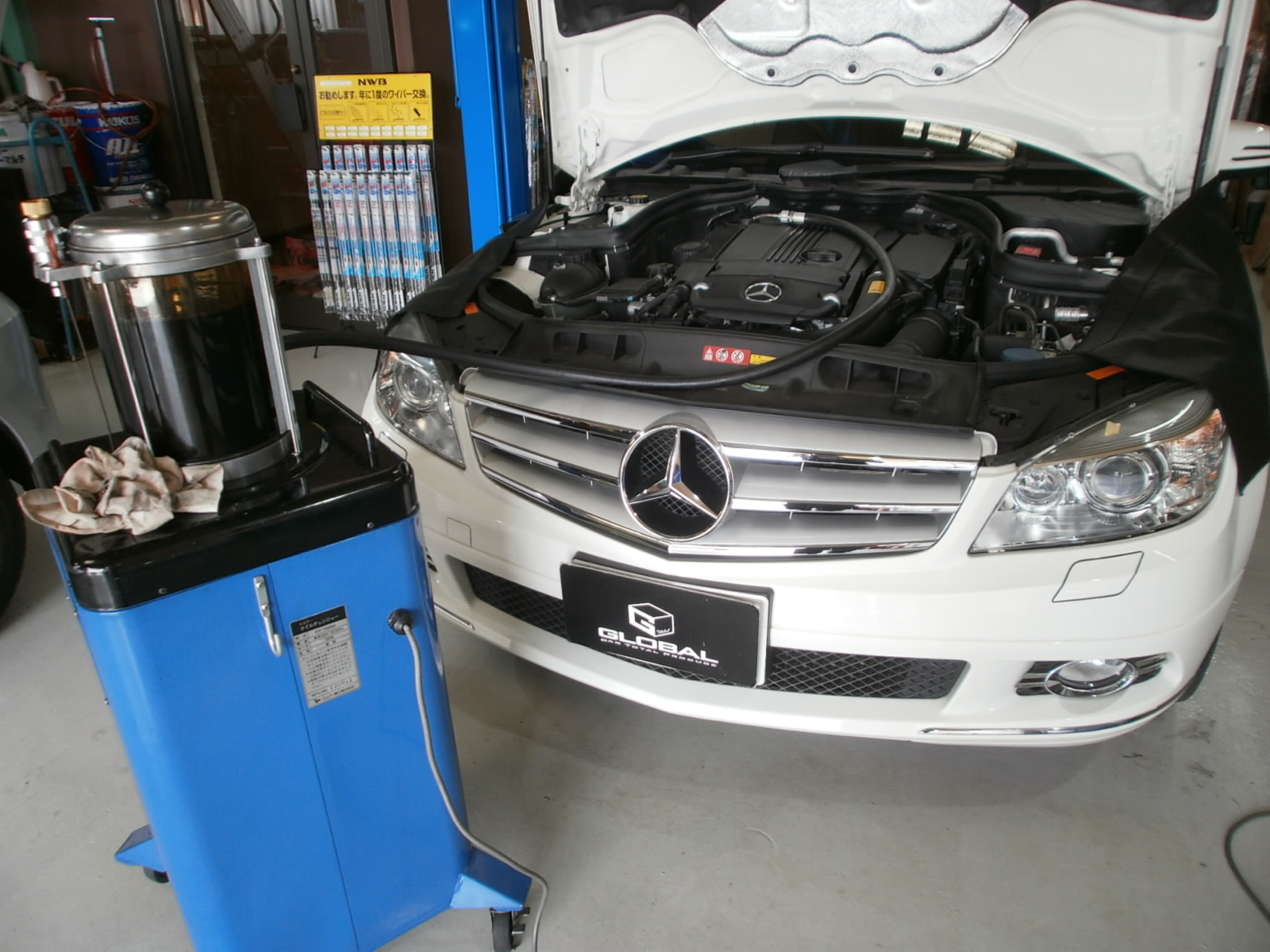 GLOBAL・MBworksは、エンジンオイル交換ご入庫時、セーフティ点検も実施しております。タイヤ空気圧点検、ウォッシャー液補充などなど。その際、気になる箇所があればしっかり事前にお伝えいたします(#^^#)