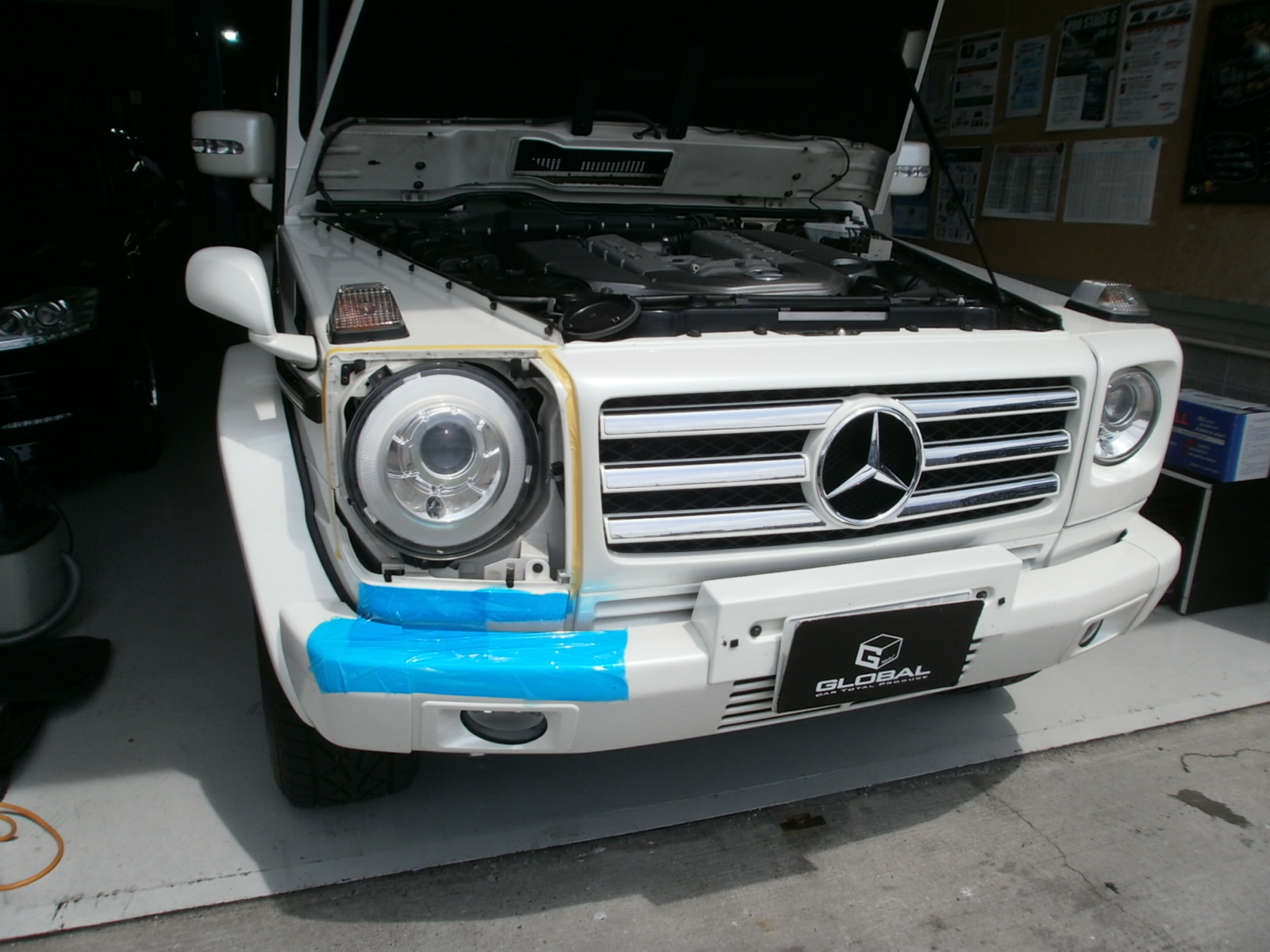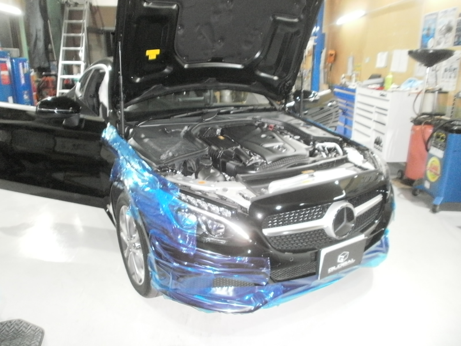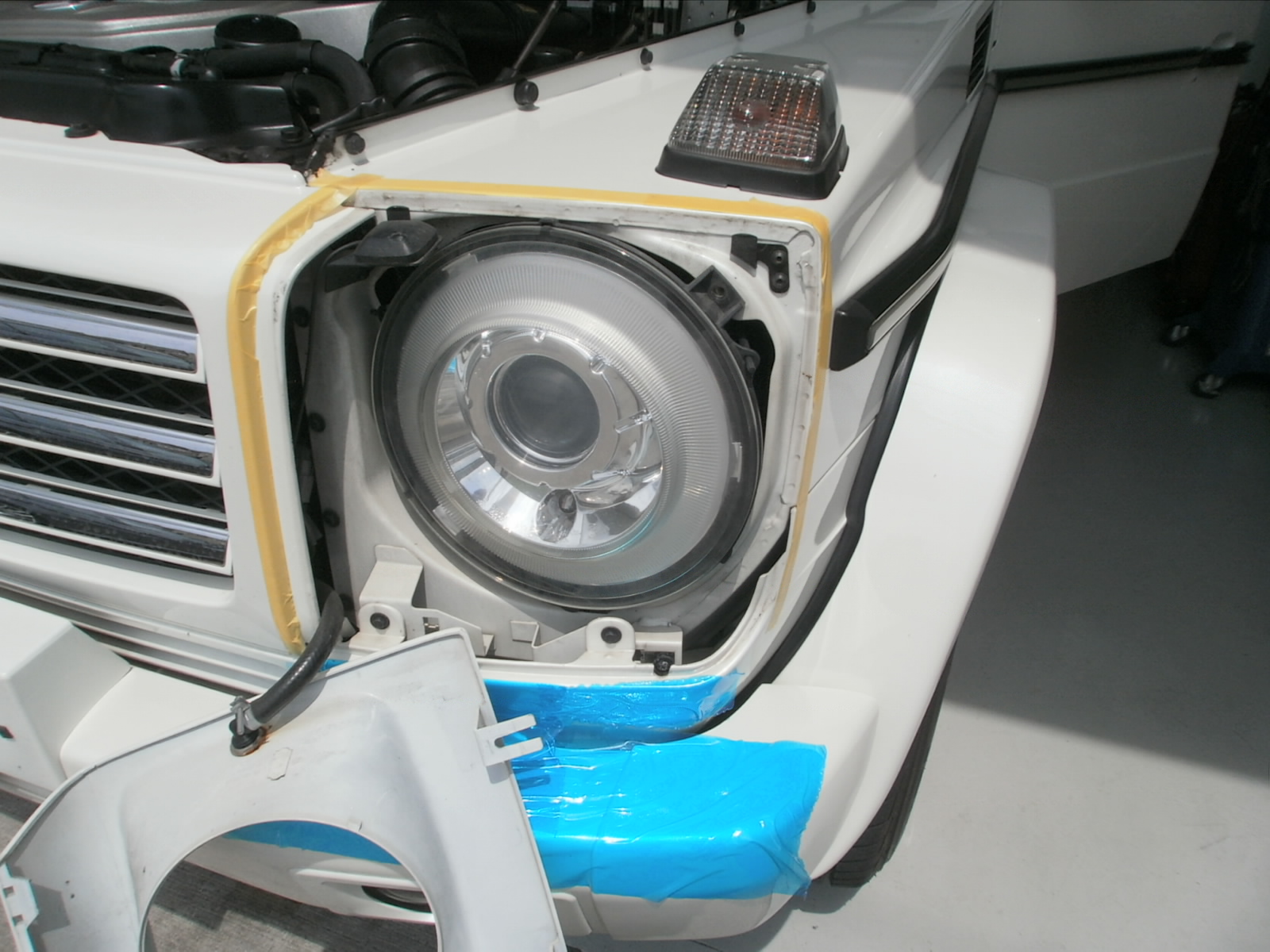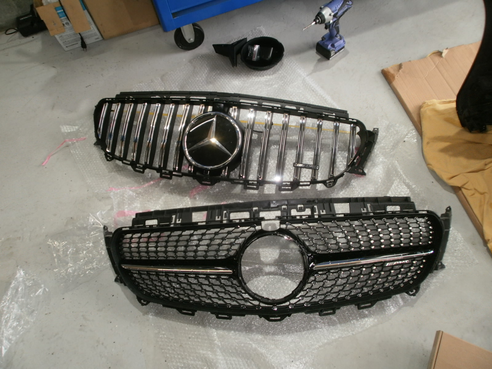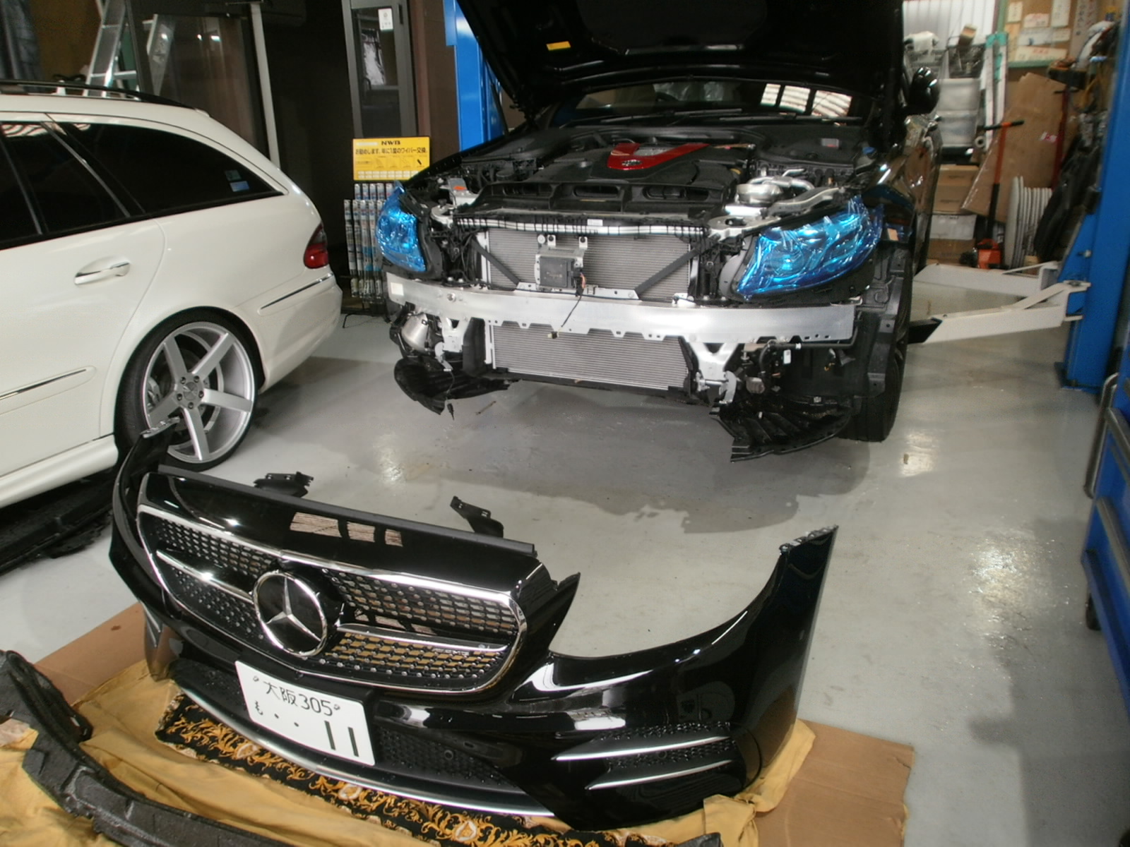 フロントバンパーをおろしていきます。ベンツマークは付け替えて取付。この時点で絶対カッコよくなるのは分かってましたw