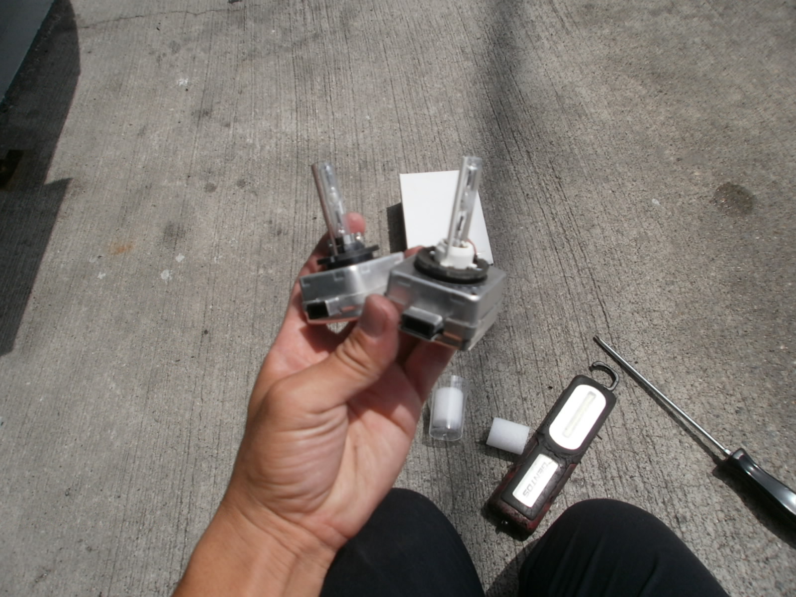 点検、診断させていただき、HIDバーナーの故障でした。バーナーの寿命ですね。切れていたのは片側だけでしたが、反対側も同じ取付期間だと考えると寿命も近いかもしれませんので、両側同時に交換させていただきました。