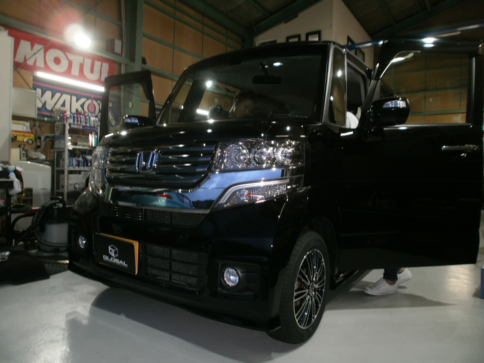 W様 NBoxカスタム フォグランプLED化、ナビ交換、社外車種専用フロアマット取付です。