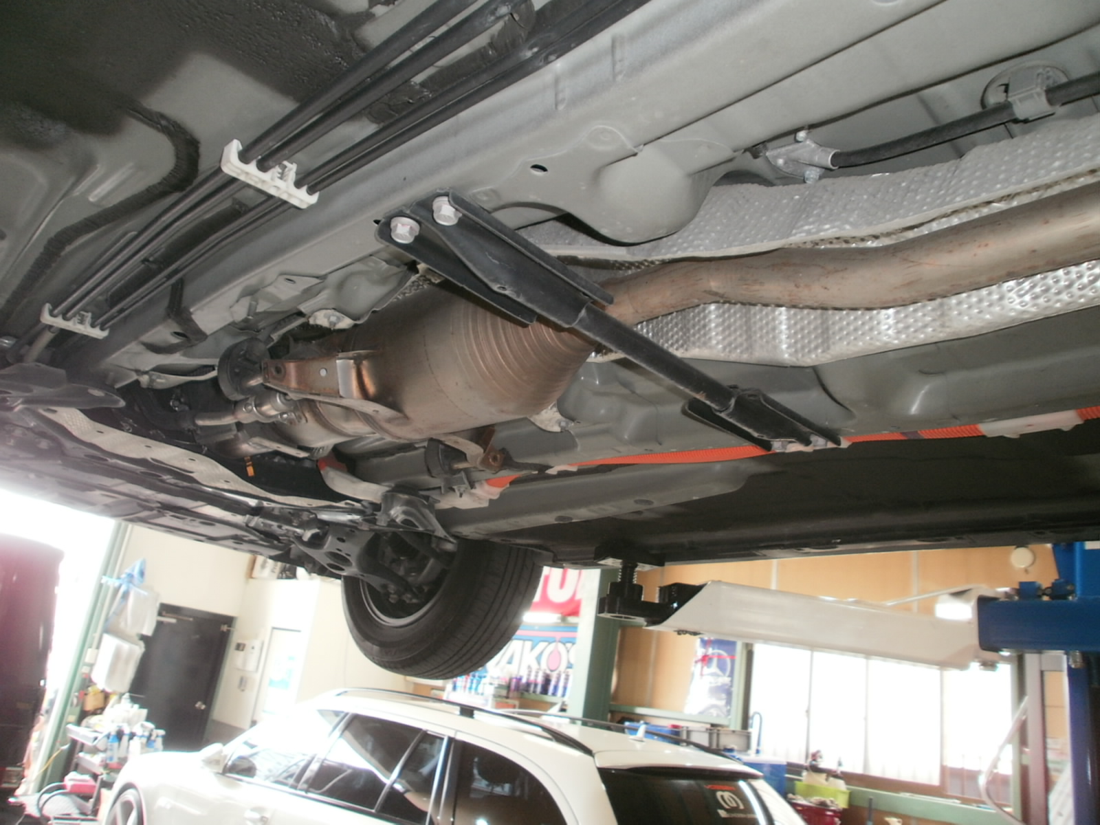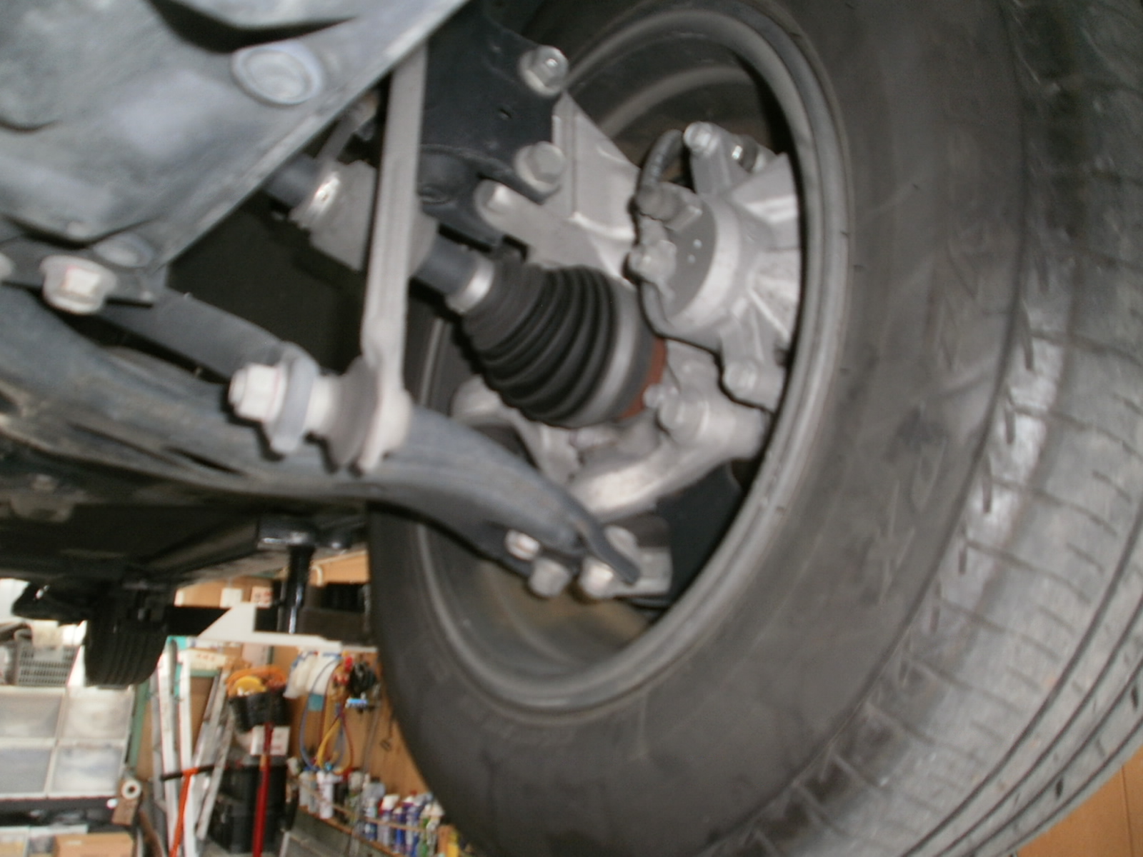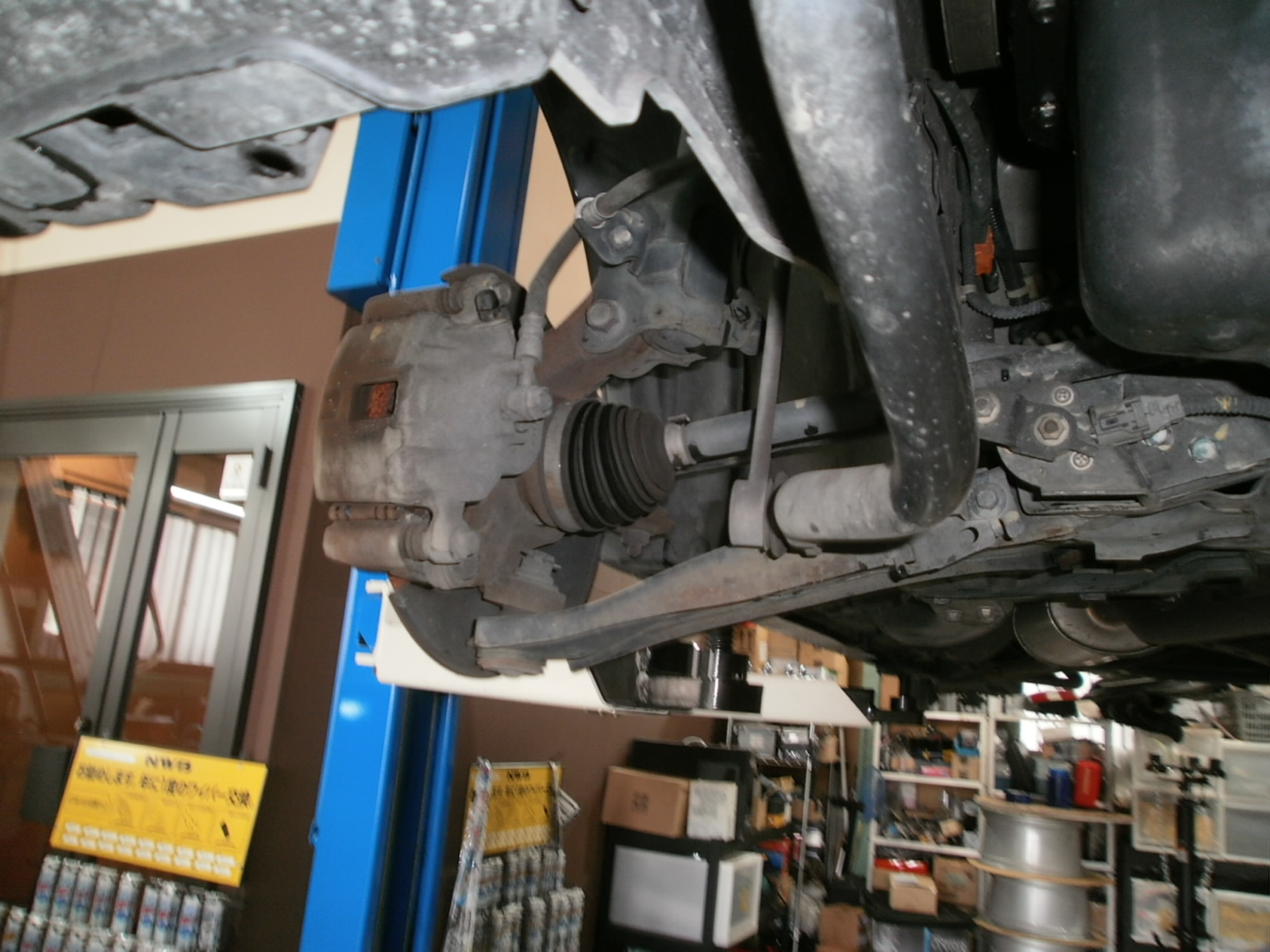 音の原因は、スタビブッシュやバンプストップなどが怪しいですね~お客様お立合いの元、足廻りの異音原因の説明をさせていただきました。
