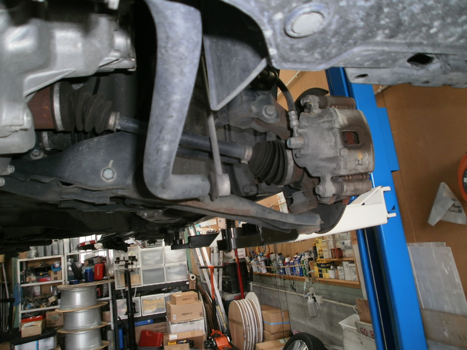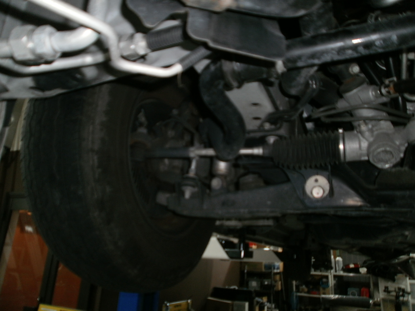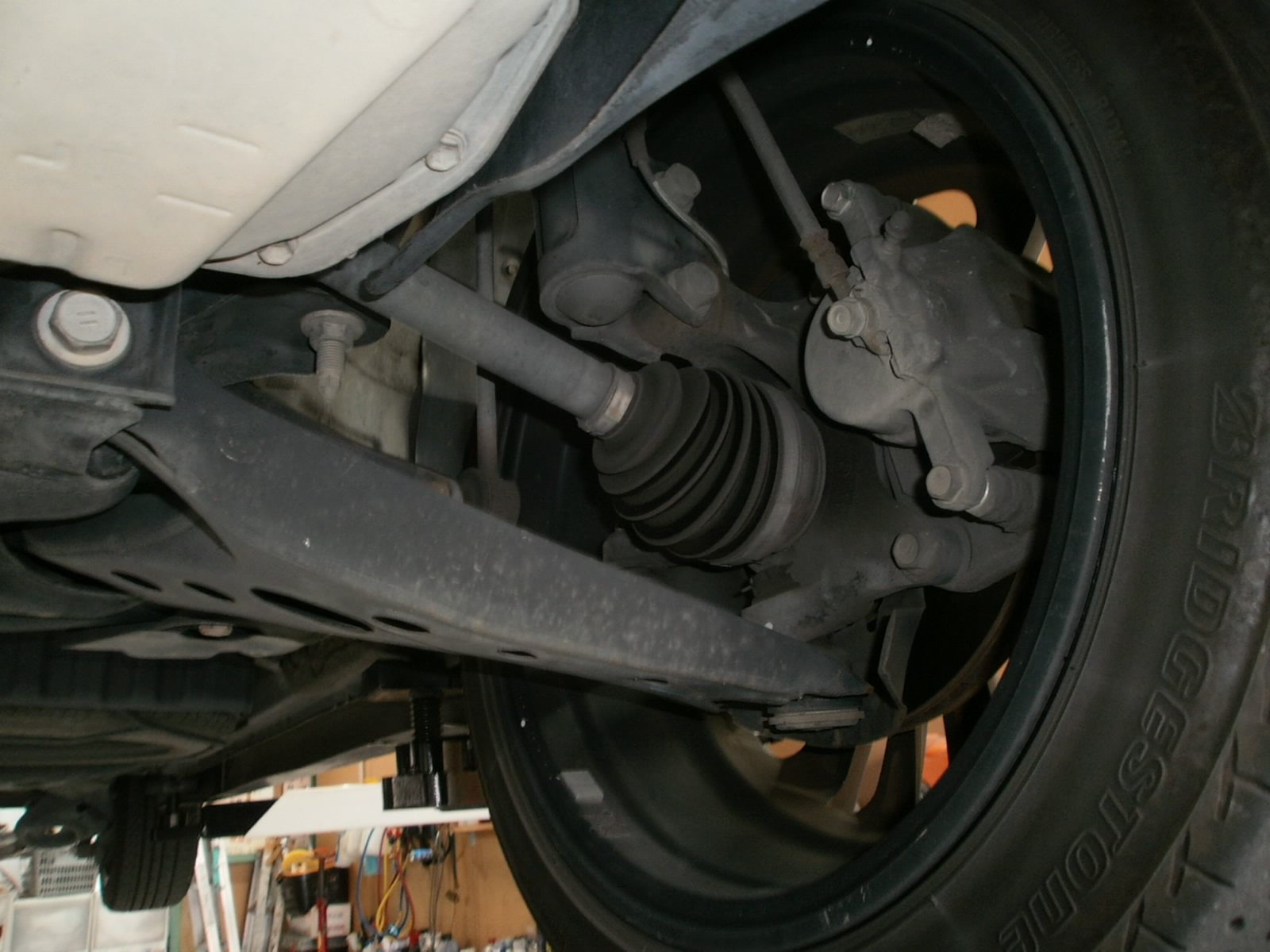 音の原因は、スタビブッシュやバンプストップなどが怪しいですね~お客様お立合いの元、足廻りの異音原因の説明をさせていただきました。