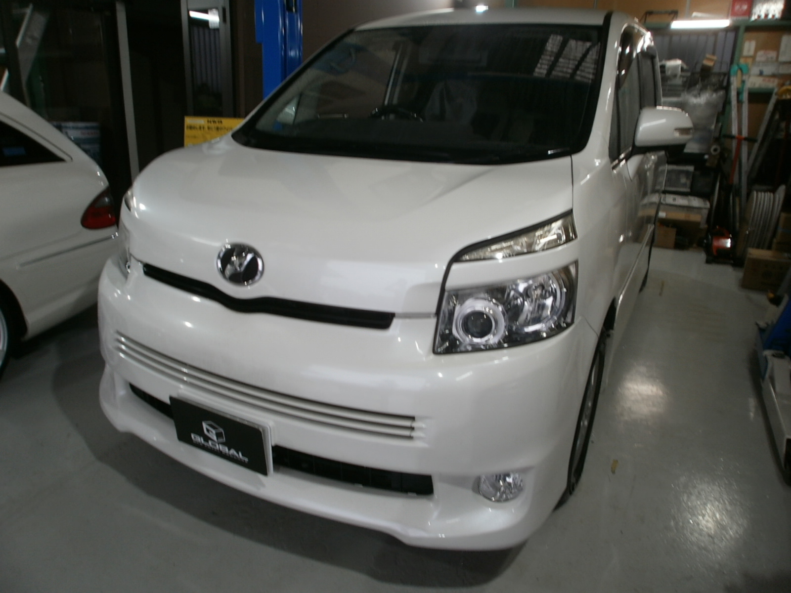フロント・リア・サイドのエアロ取付です。取付などは安全の為、2人がかりでやっていきましょう(^^♪