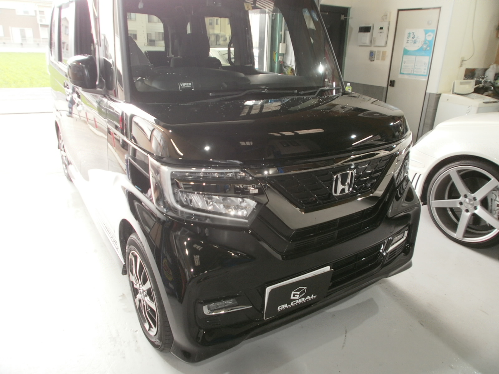 ご成約車輌NBoxカスタム、ご納車に向けシートカバー取付です。