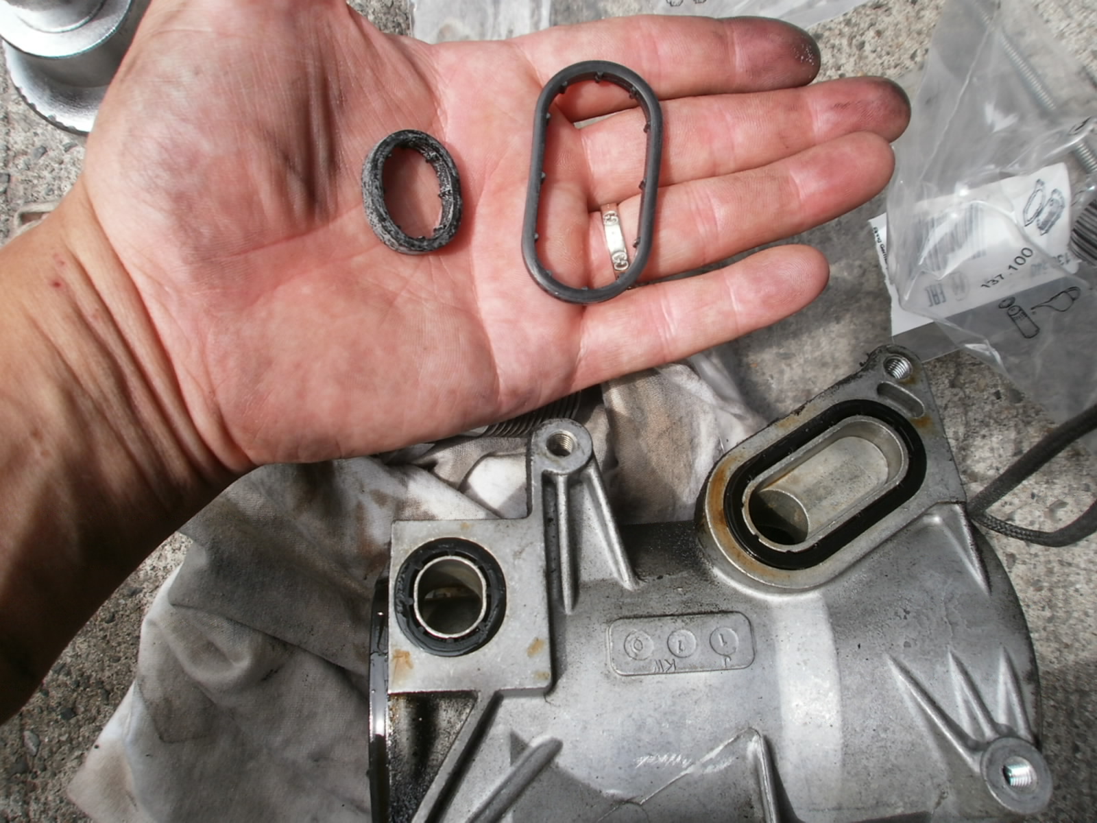 オイルクーラー・オイルフィルターハウジングなどのパッキン類、左右のヘッドカバーパッキンなどの交換です。