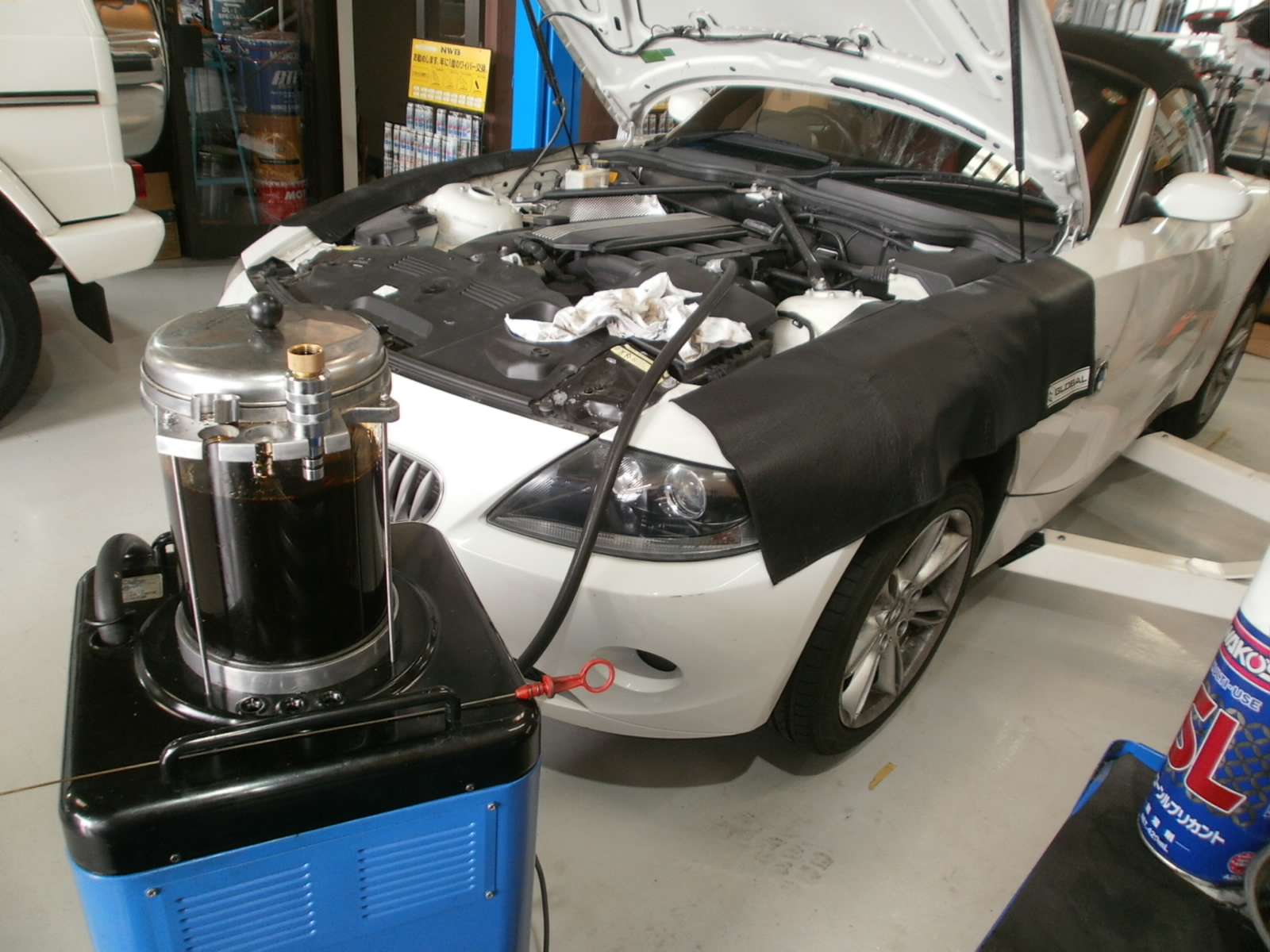 オイル交換とあわせてオイルあがり防止にPLUS91を施工。