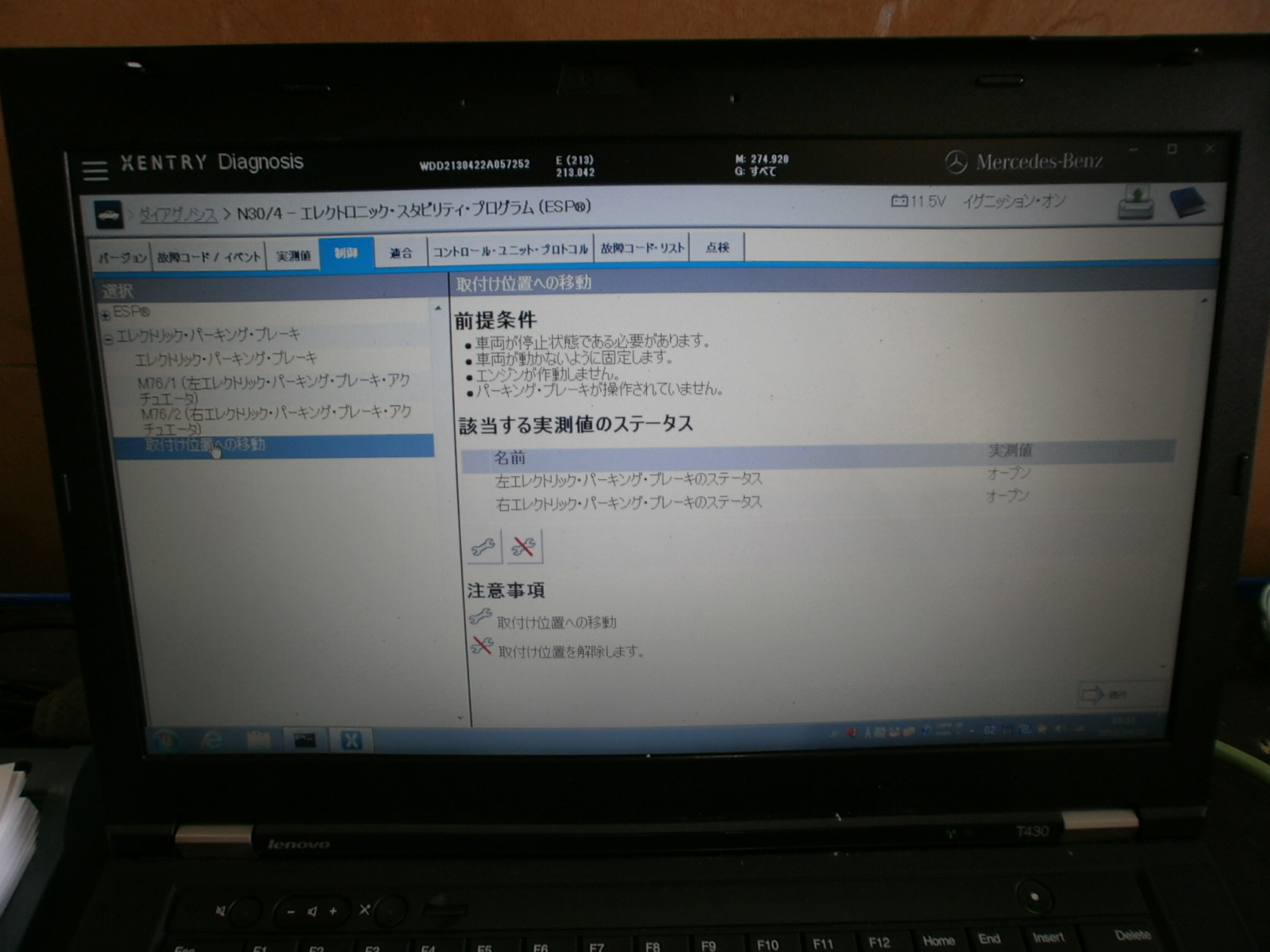 電子制御バーキングブレーキの為、当社完備のMercedes専用テスターにて解除などの作業もしっかりとおこなっております。