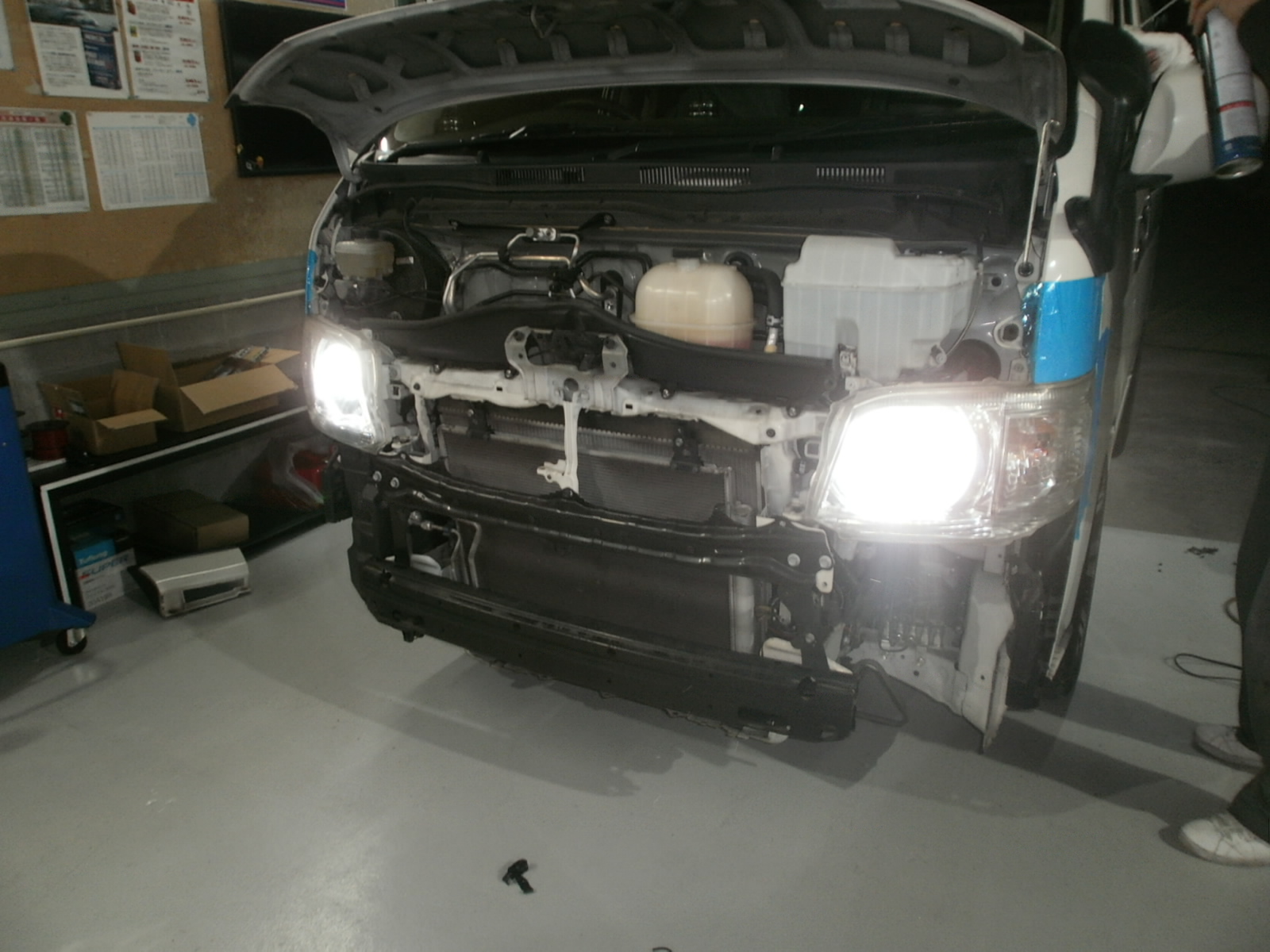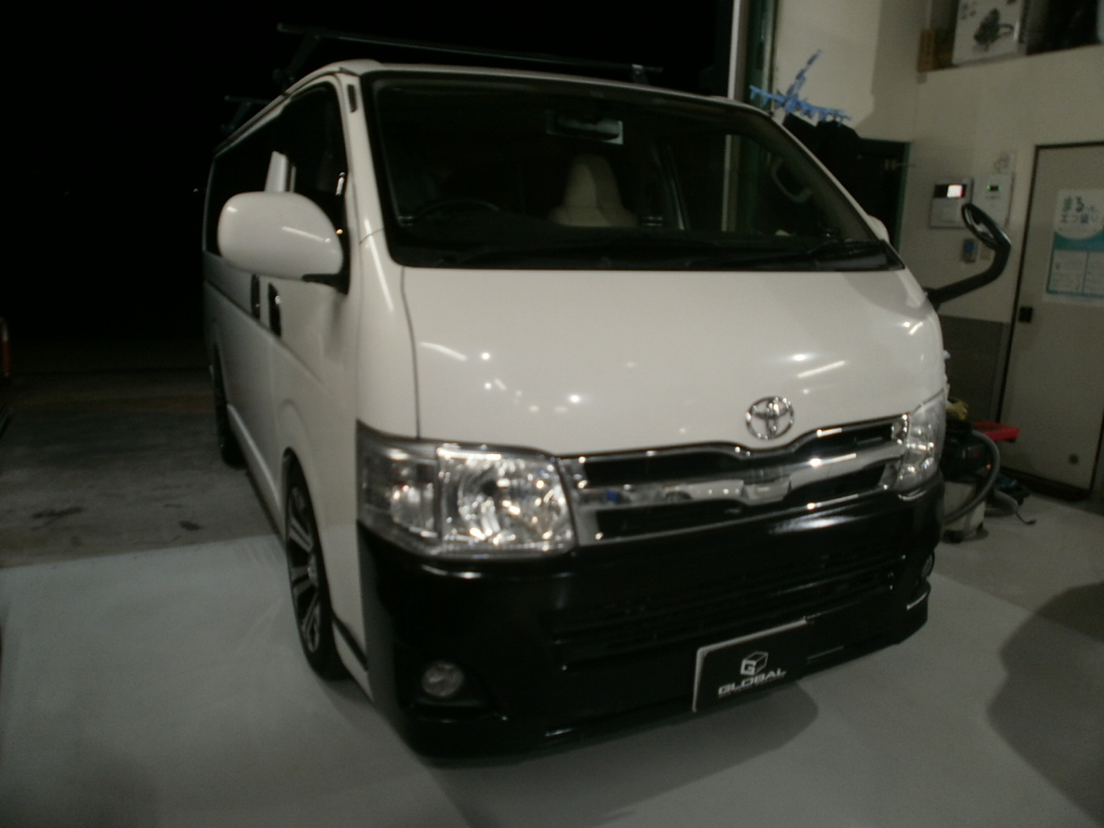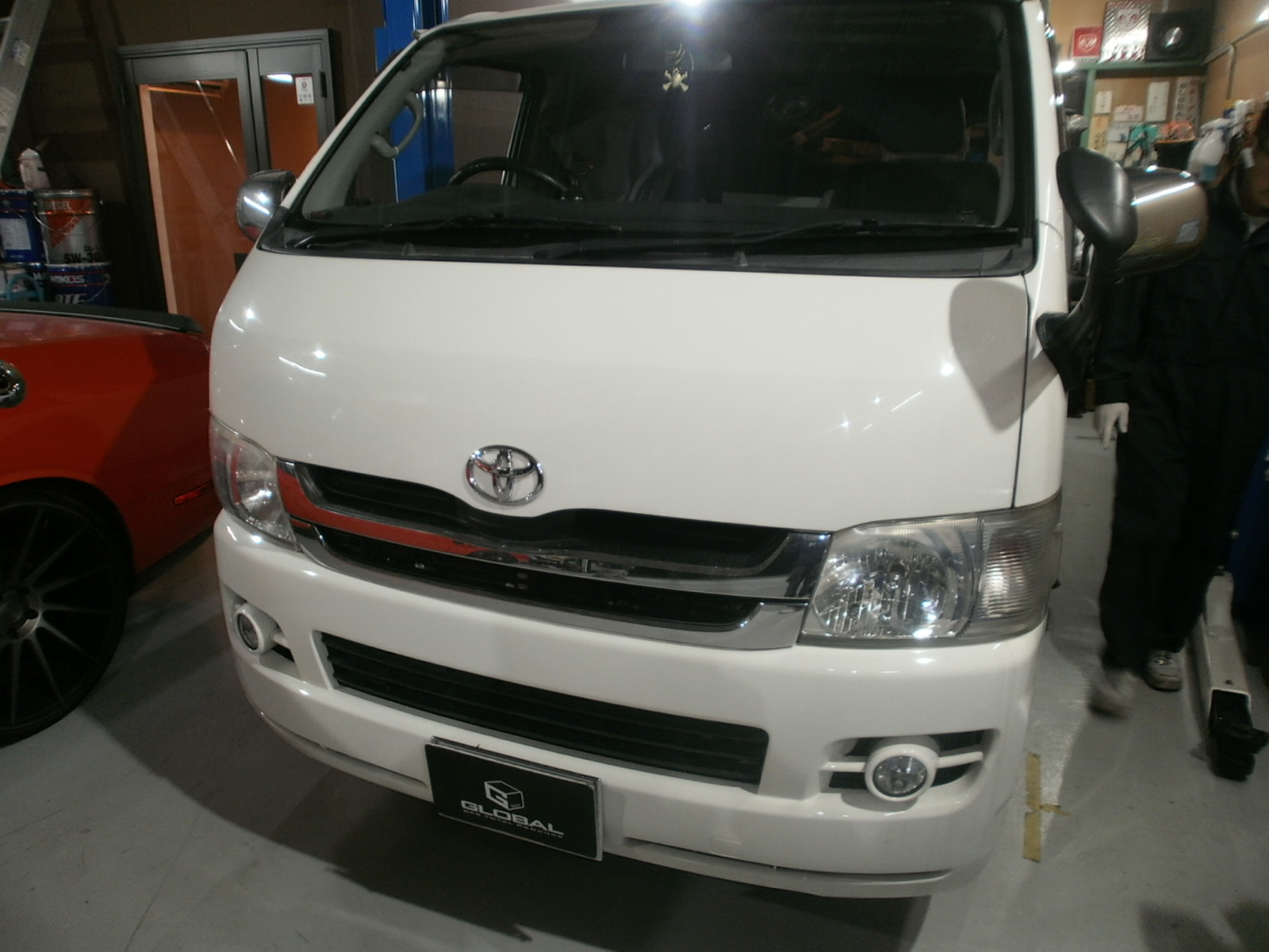 H様 ハイエース サイドバイザー交換取付 LEDヘッドライト保証での部品交換です。