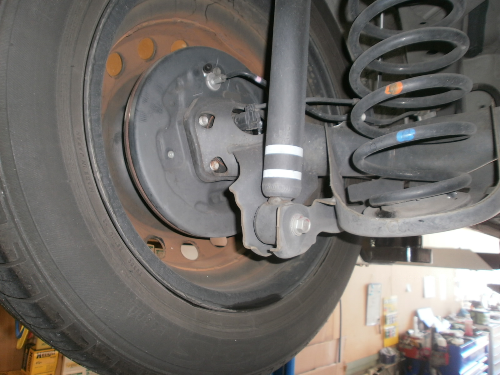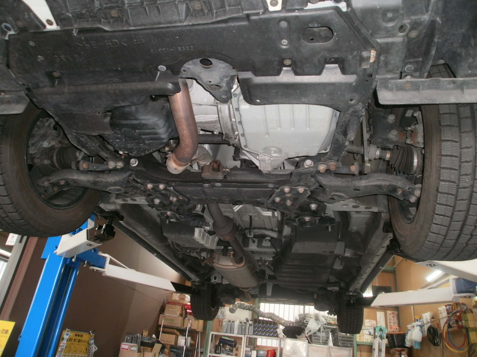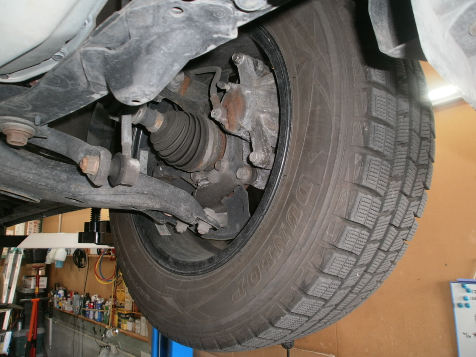 下廻り、足廻り→ブーツ破れ、ブッシュのへたりはないか、ブレーキパッド残量なども見ていきます。