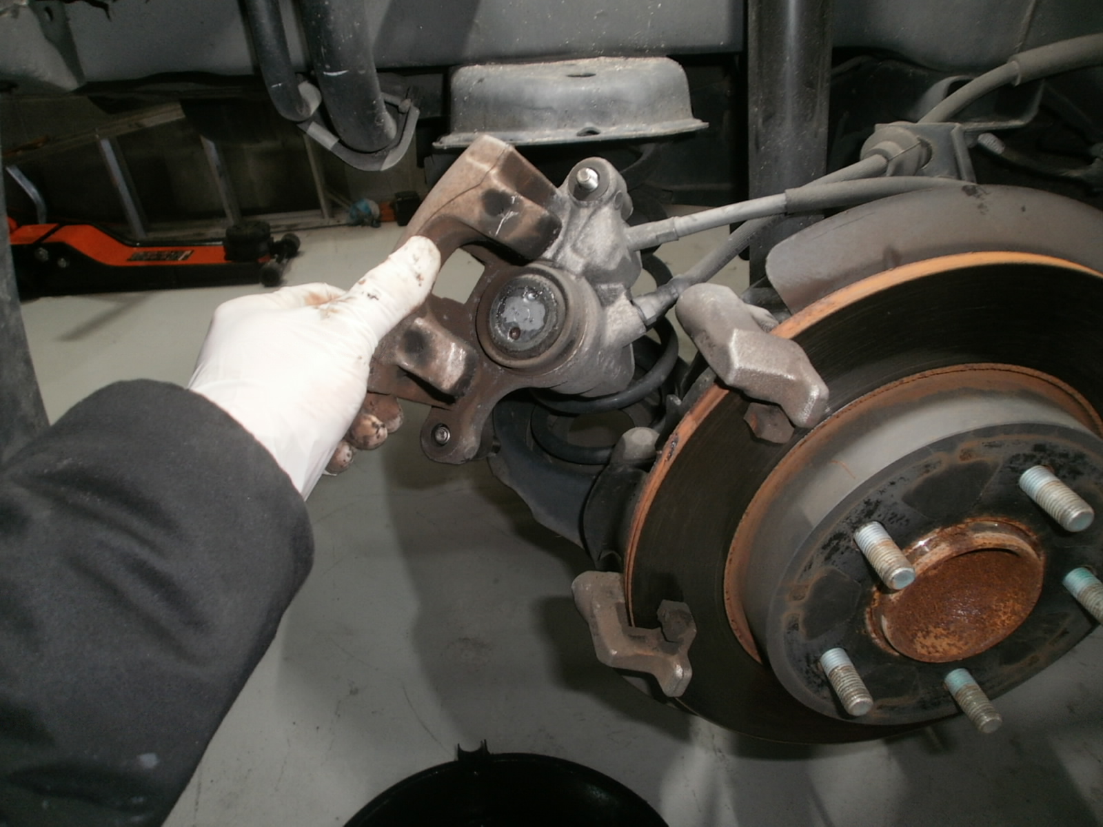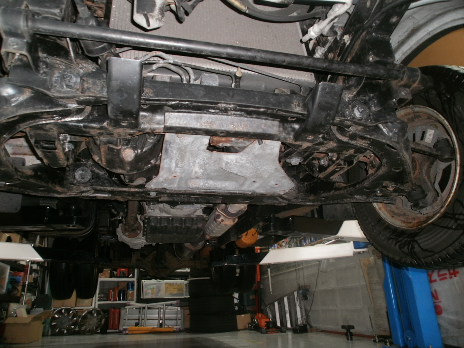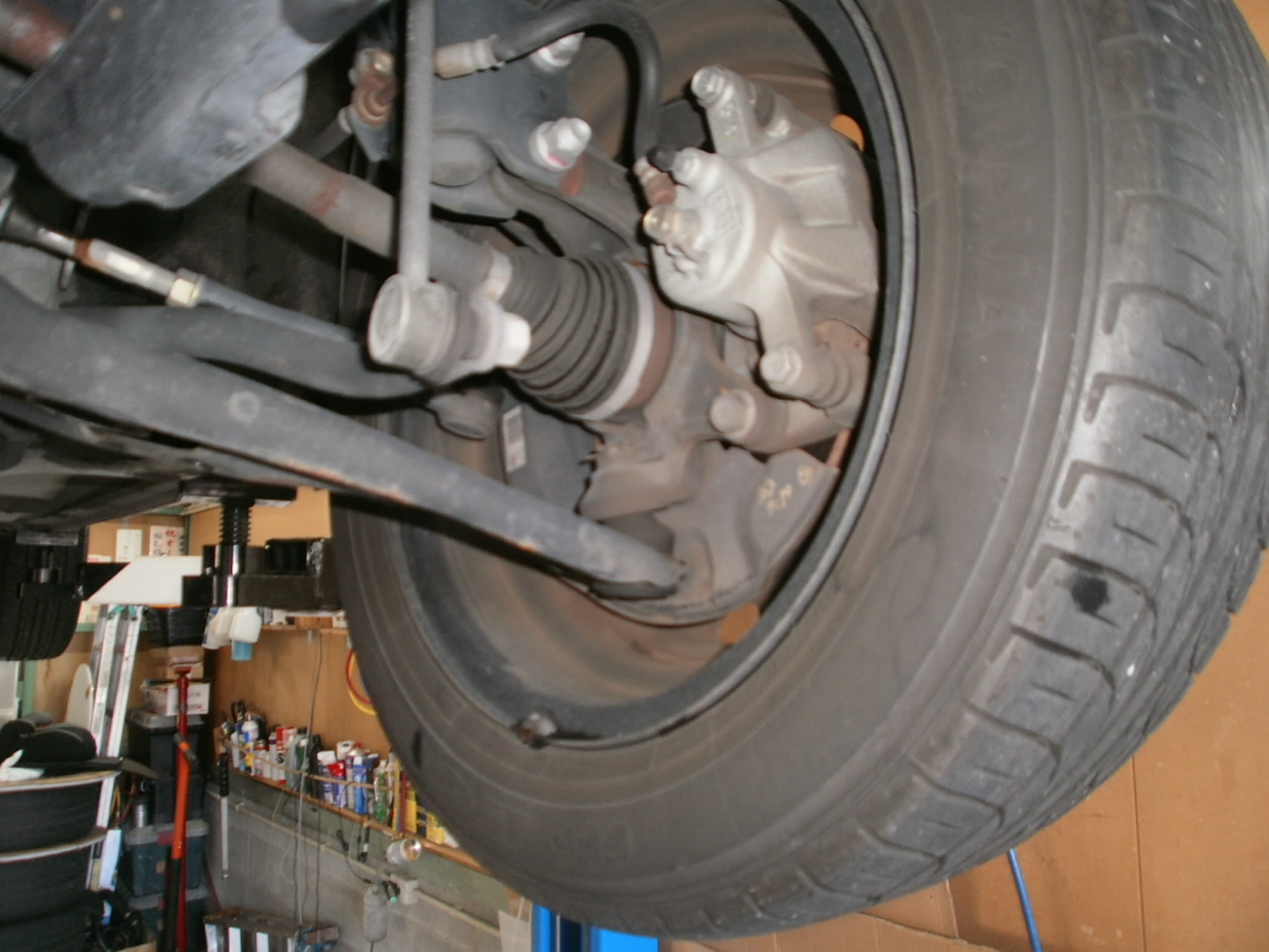 下廻り、足廻り→ブーツ破れ、ブッシュのへたりはないか、ブレーキパッド残量なども見ていきます。