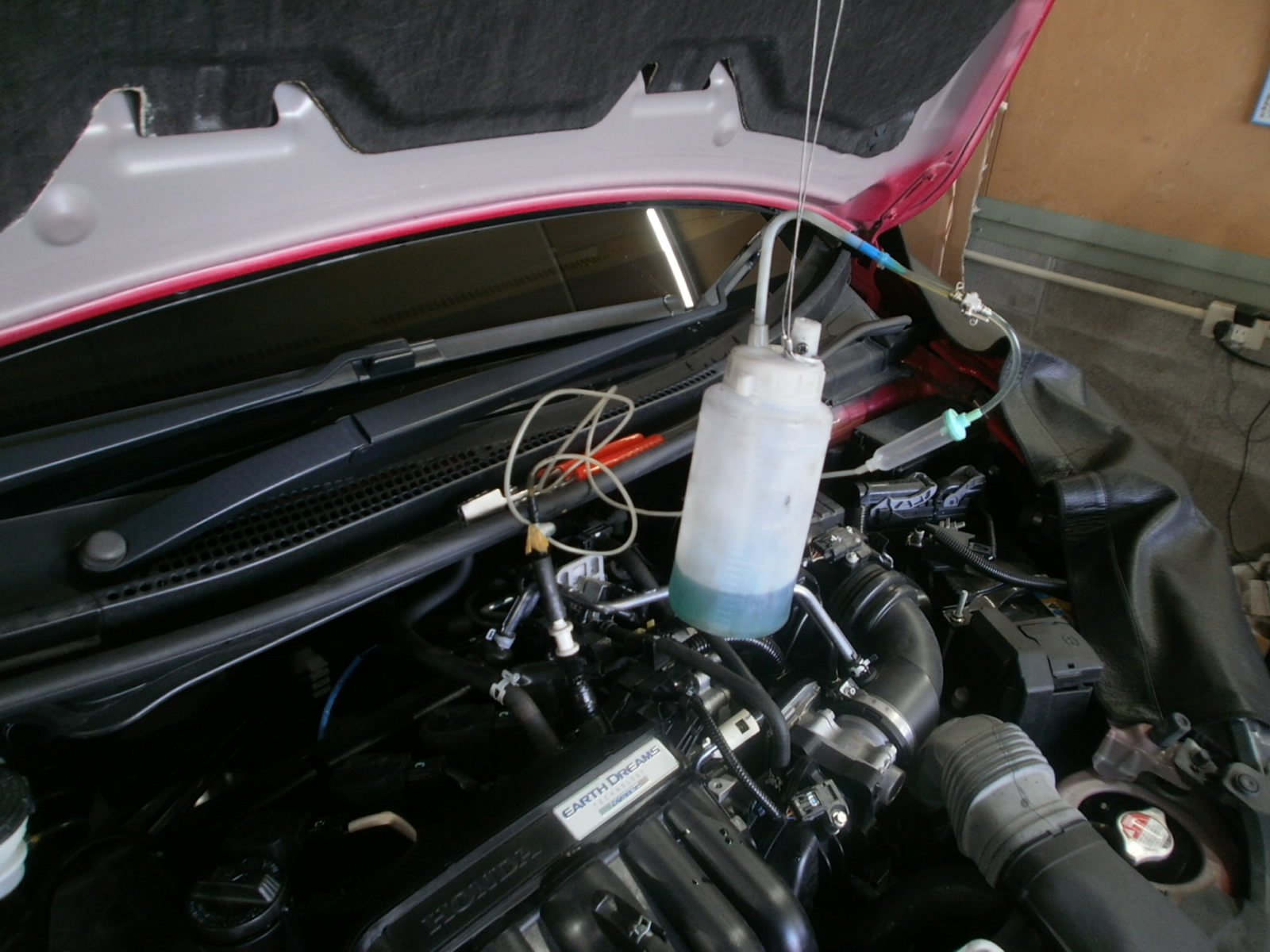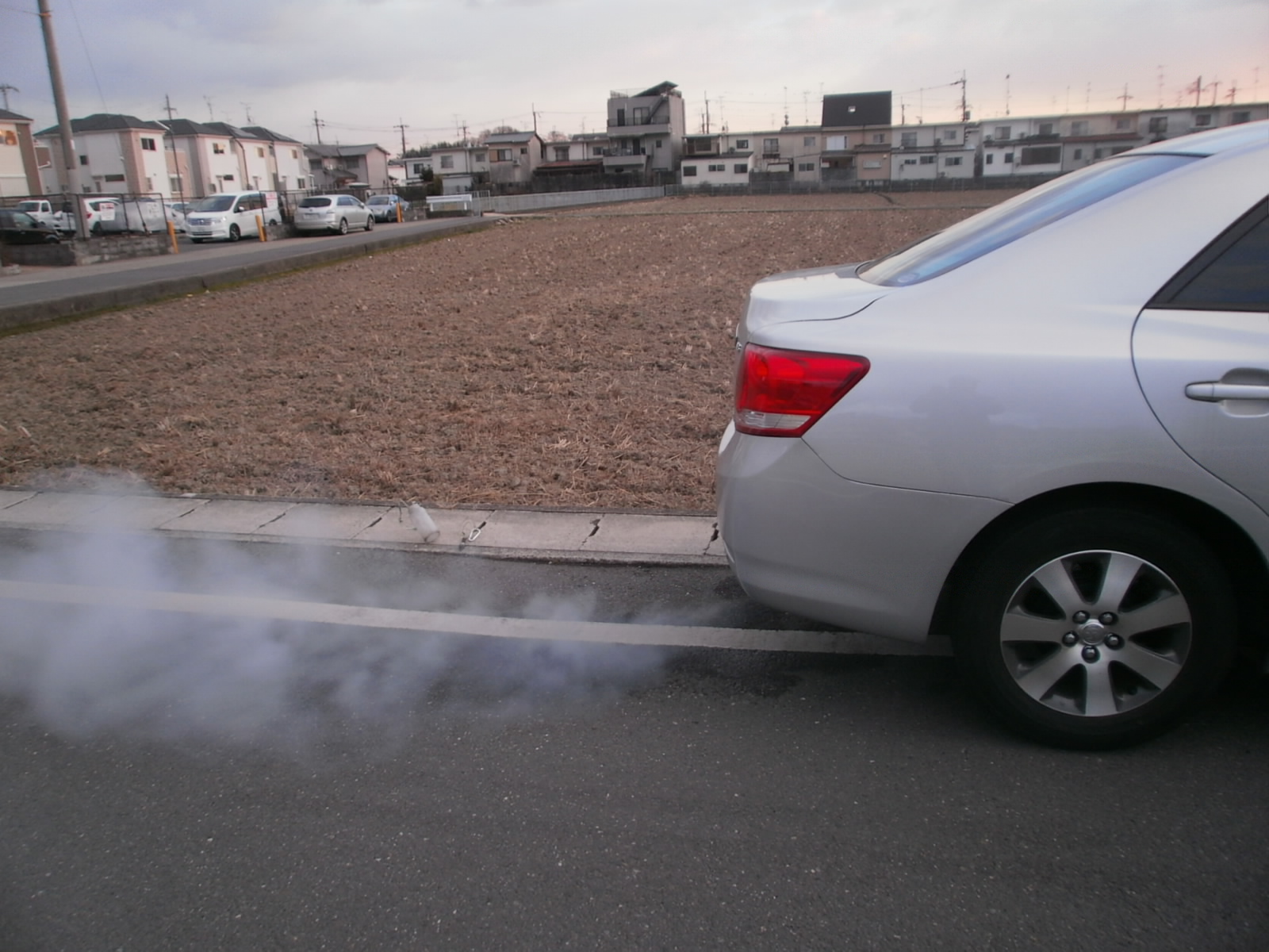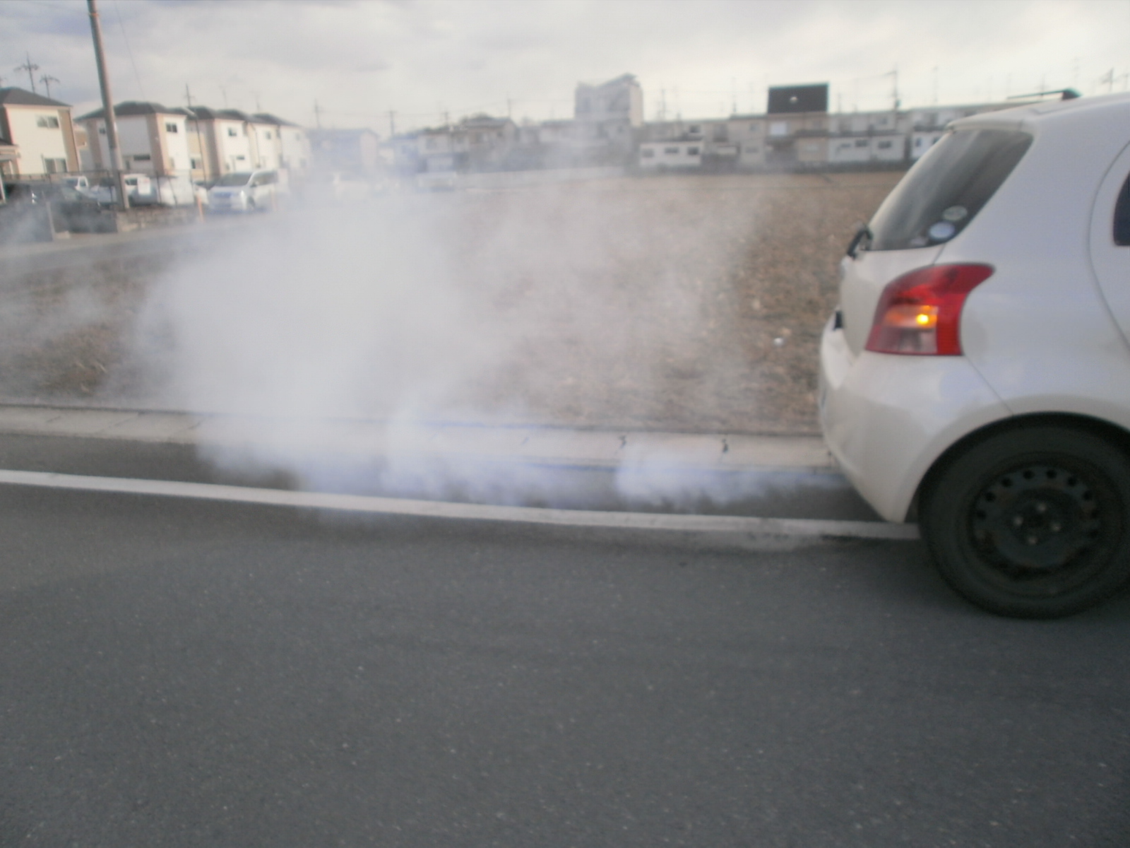 エンジン洗浄剤RECS施工後、白煙がモクモク。レスポンスがよくなりエンジンパワーUP、燃費向上などにも繋がります。