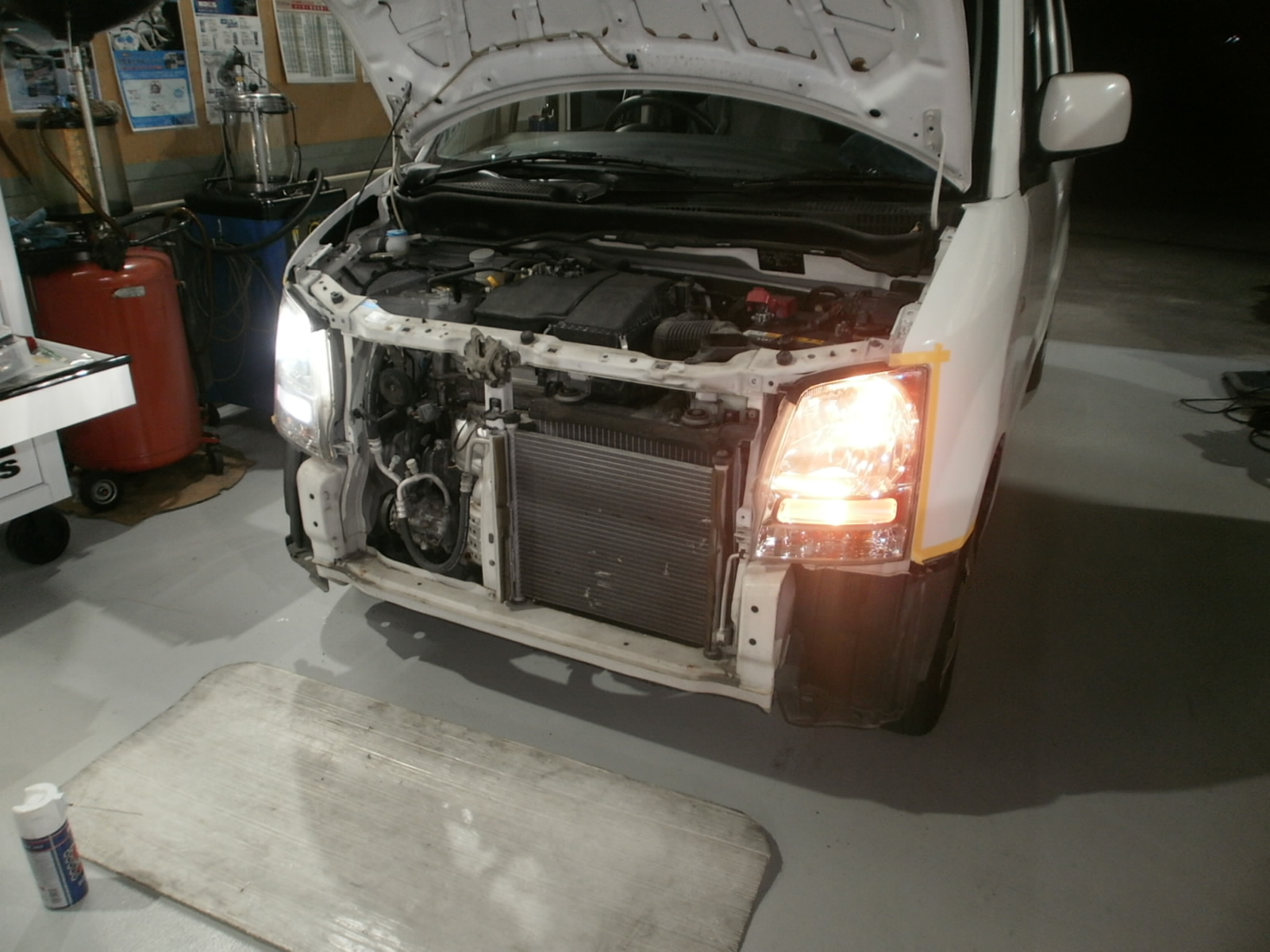 フロントバンパーをおろして、今イチオシのLEDヘッドライトキットの取付です。保証も2年付(^^♪