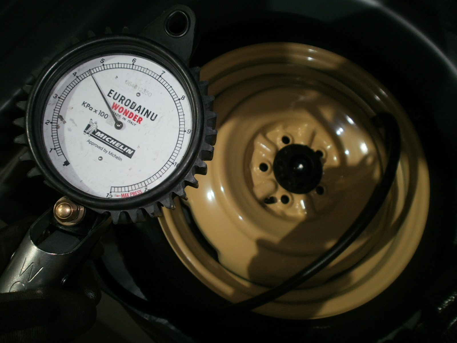 いざという時に大事なスペアタイヤ、そんないざという時に空気がない。そんなことがないようしっかりとチェックしておきましょう(#^^#)