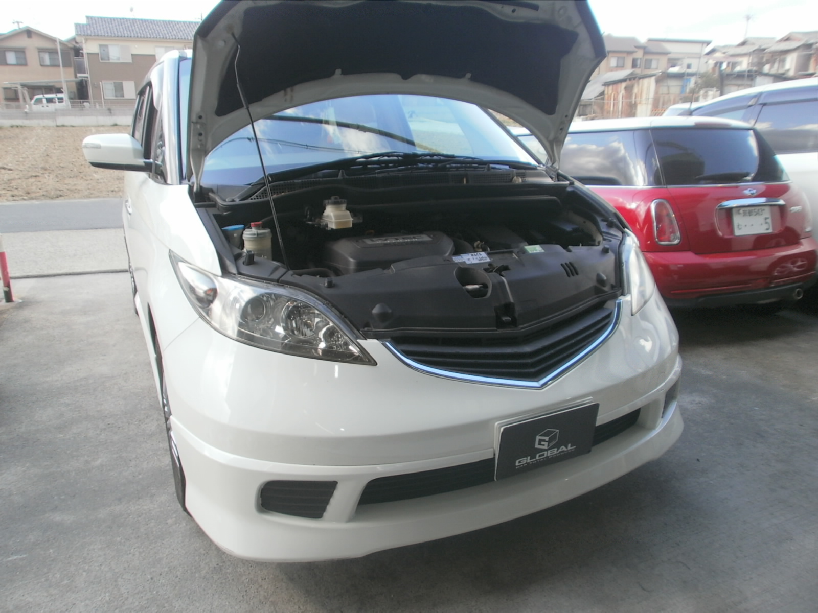 K様 エリシオン エンジンオイル・オイルフィルター交換です。