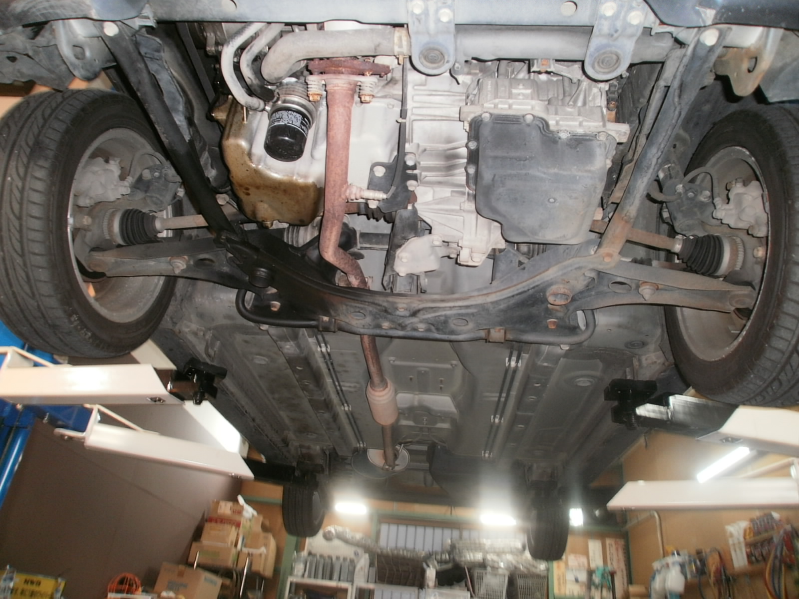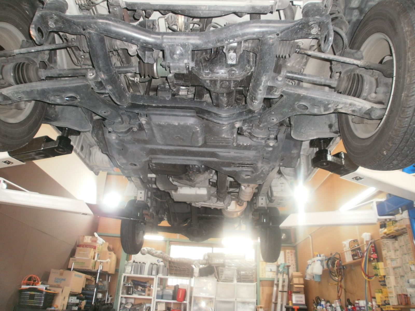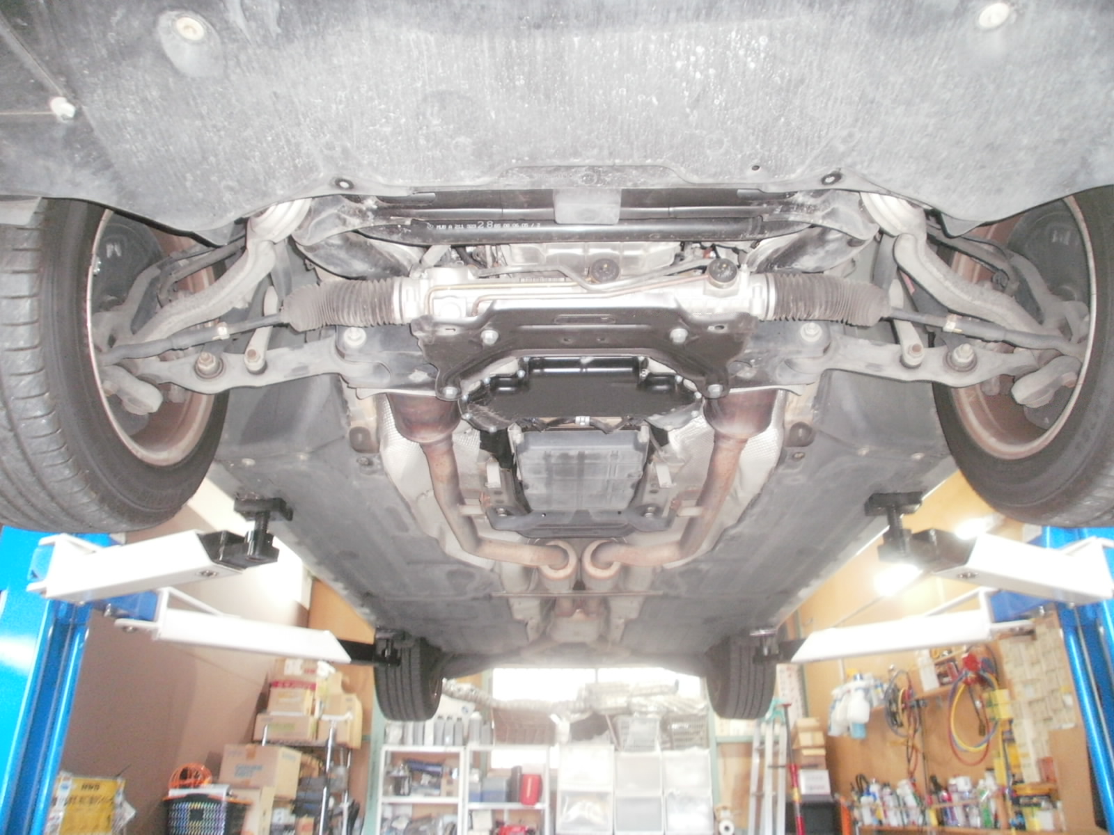 オイル漏れ・足廻り異音の診断にてご入庫です。