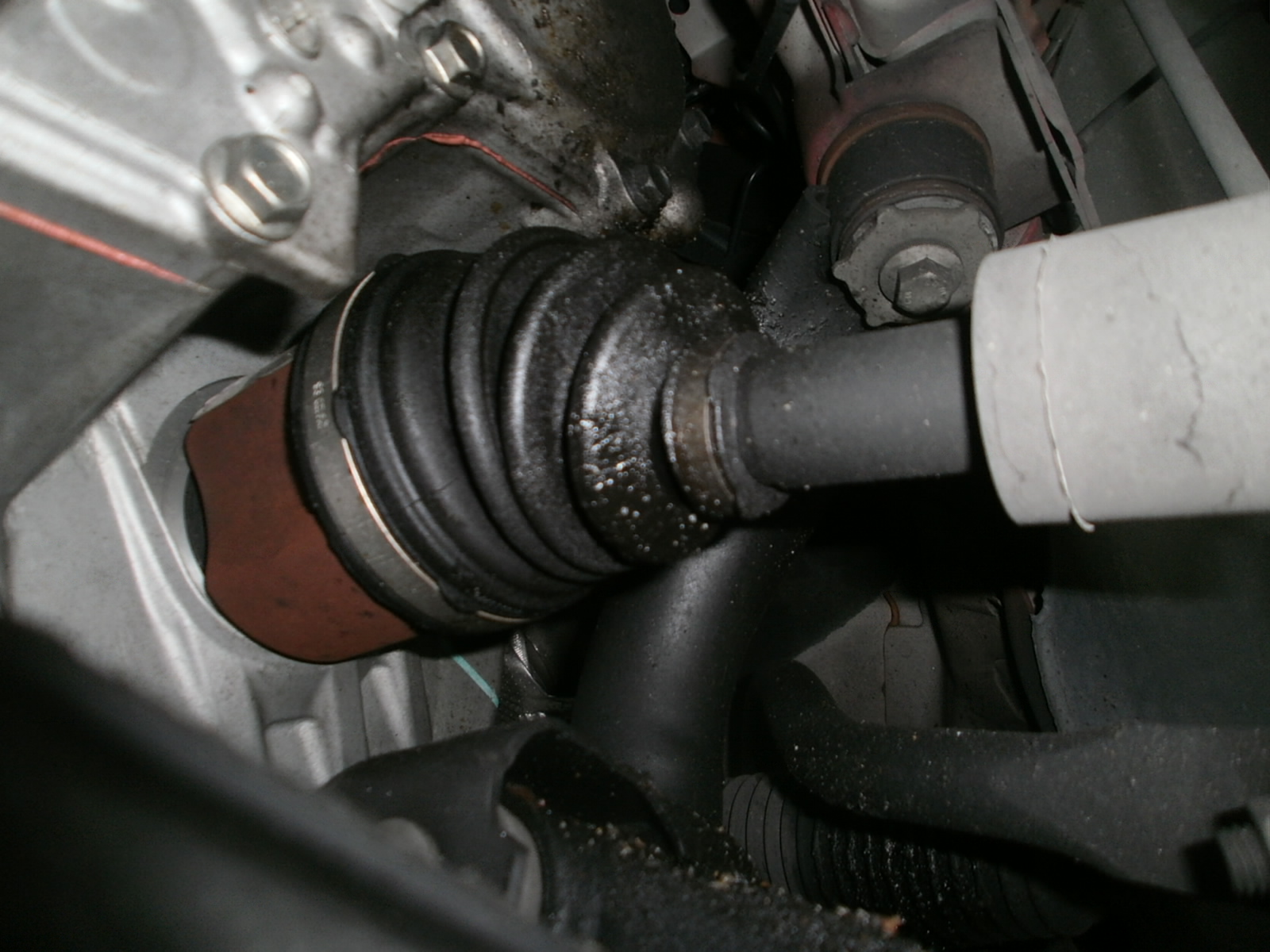 ドライブシャフトブーツが破れてグリース漏れを発見!