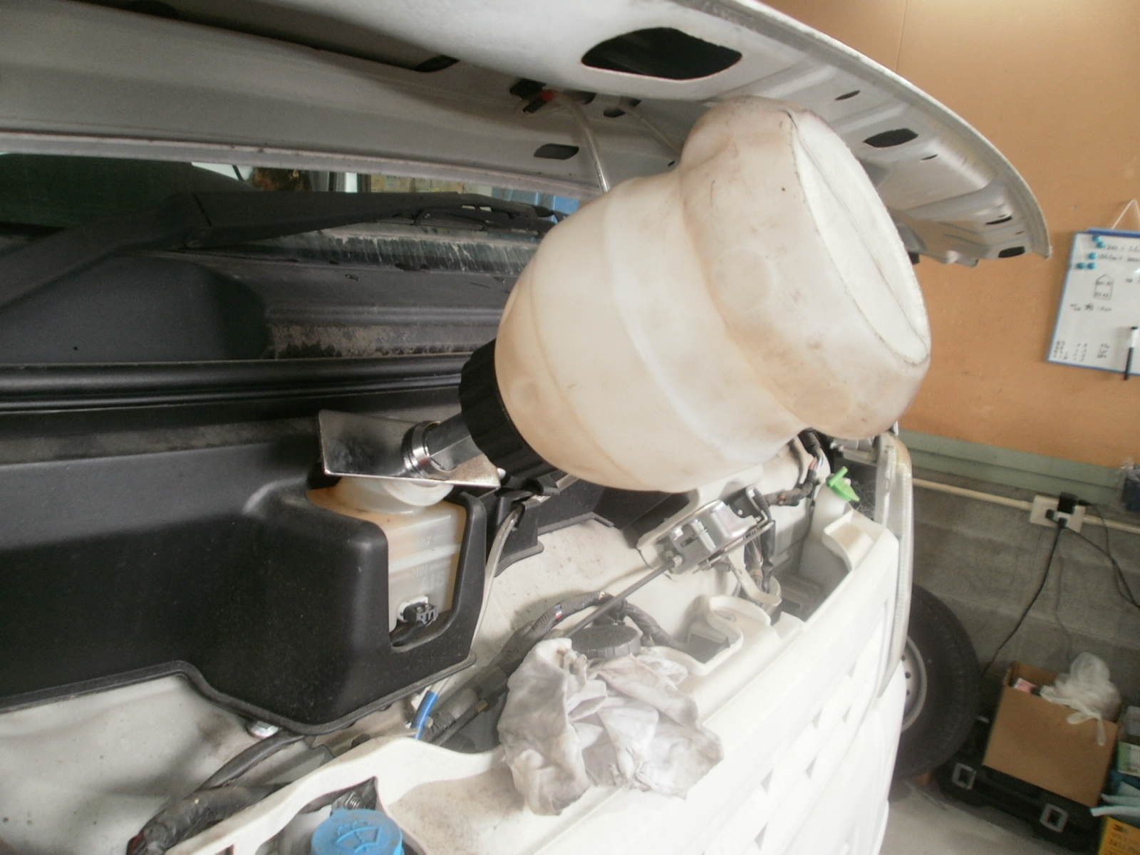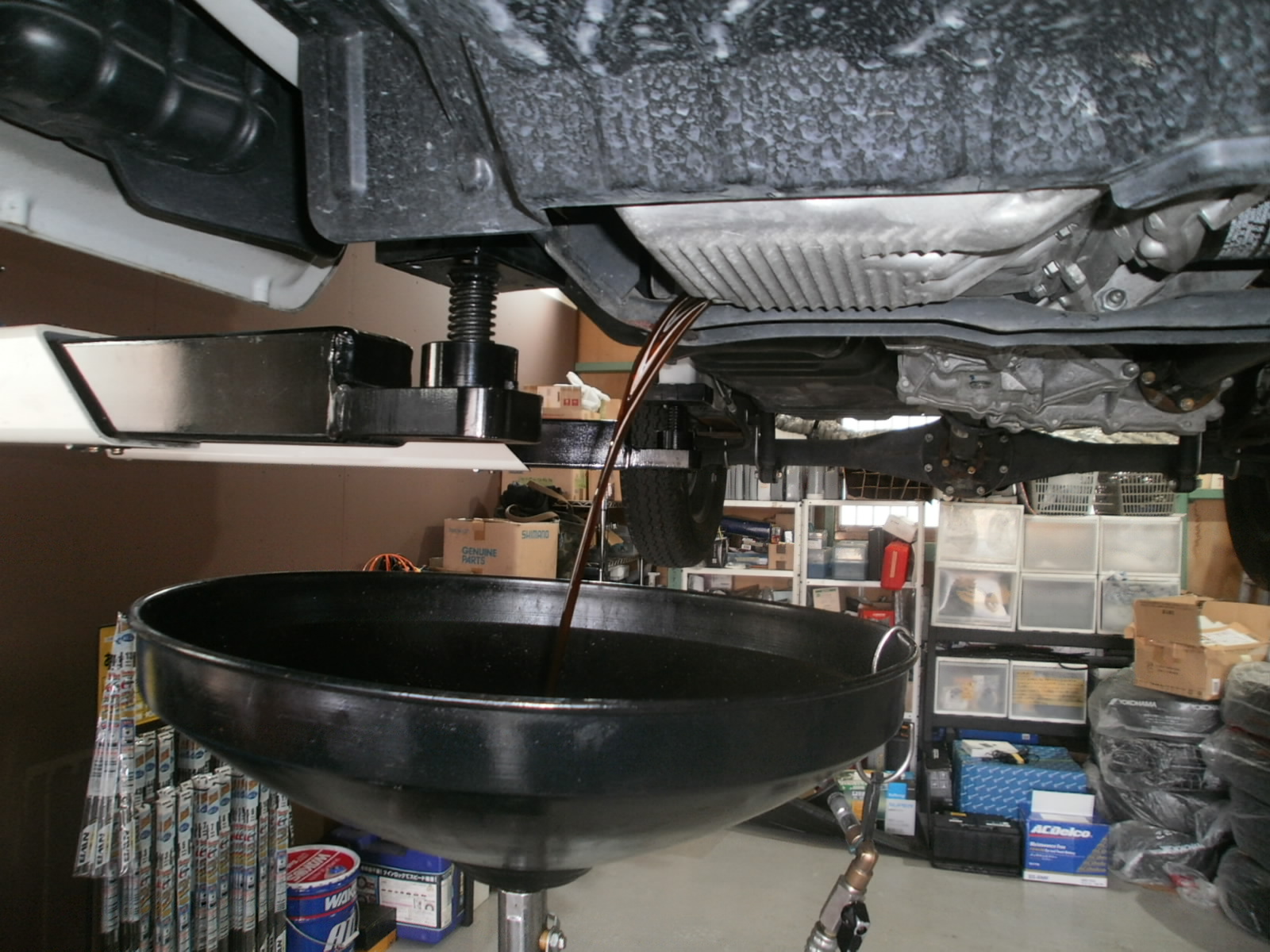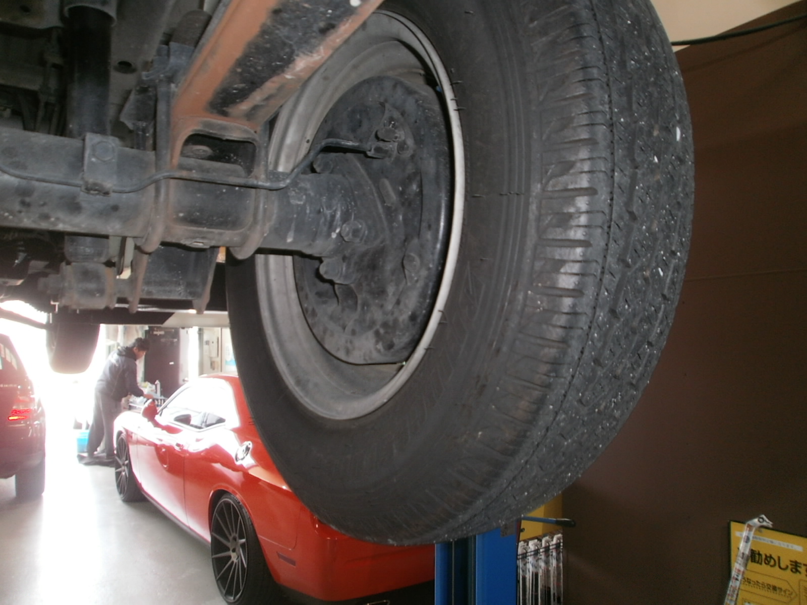 まずは、代車(社用車)のエンジンオイル交換、冬用タイヤへ交換です。