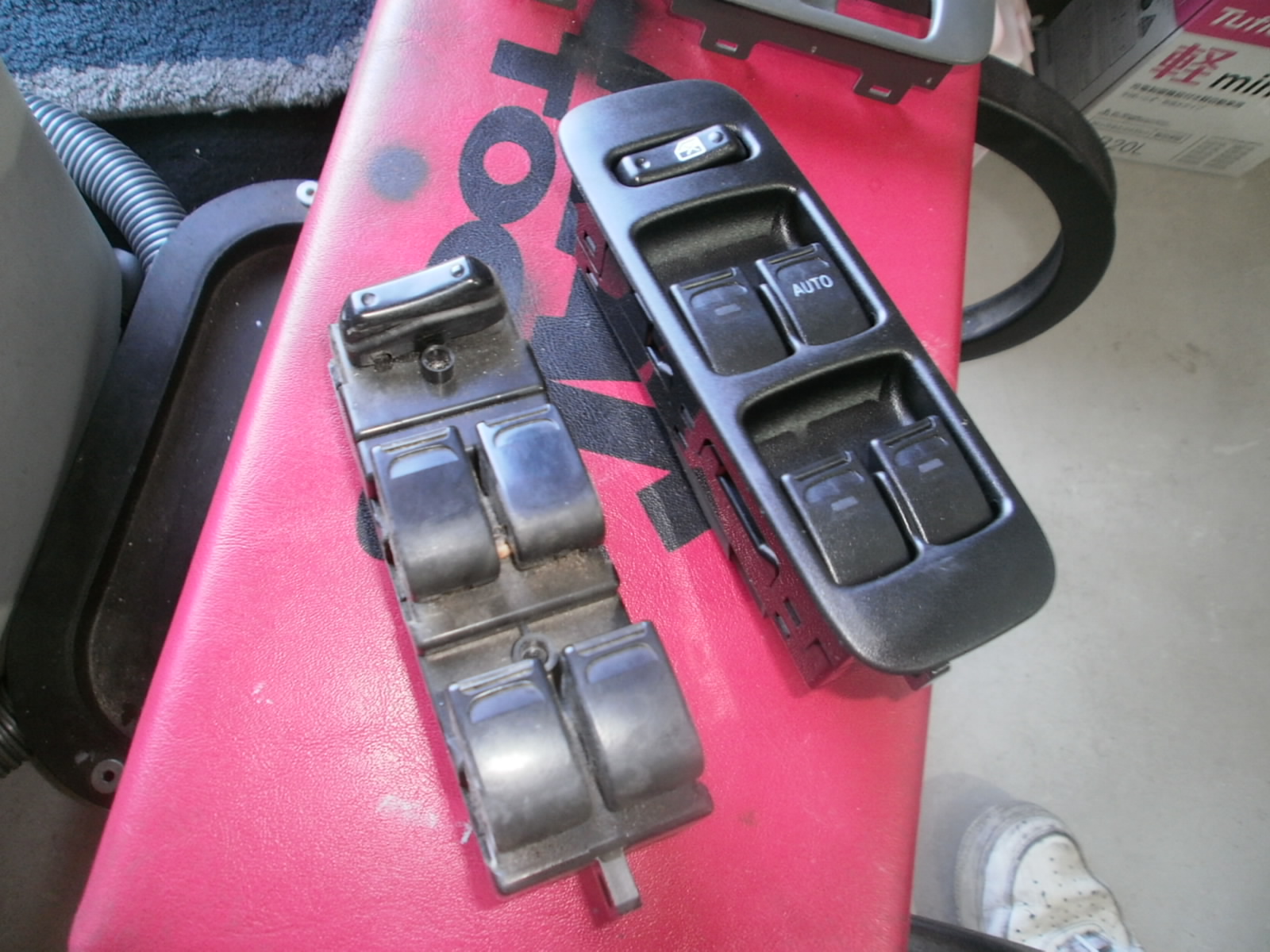 一番よく使用する運転席のスイッチが故障し、なかなかゆうことをきいてくれないとのことで、部品注文し、新品に交換させていただきました。