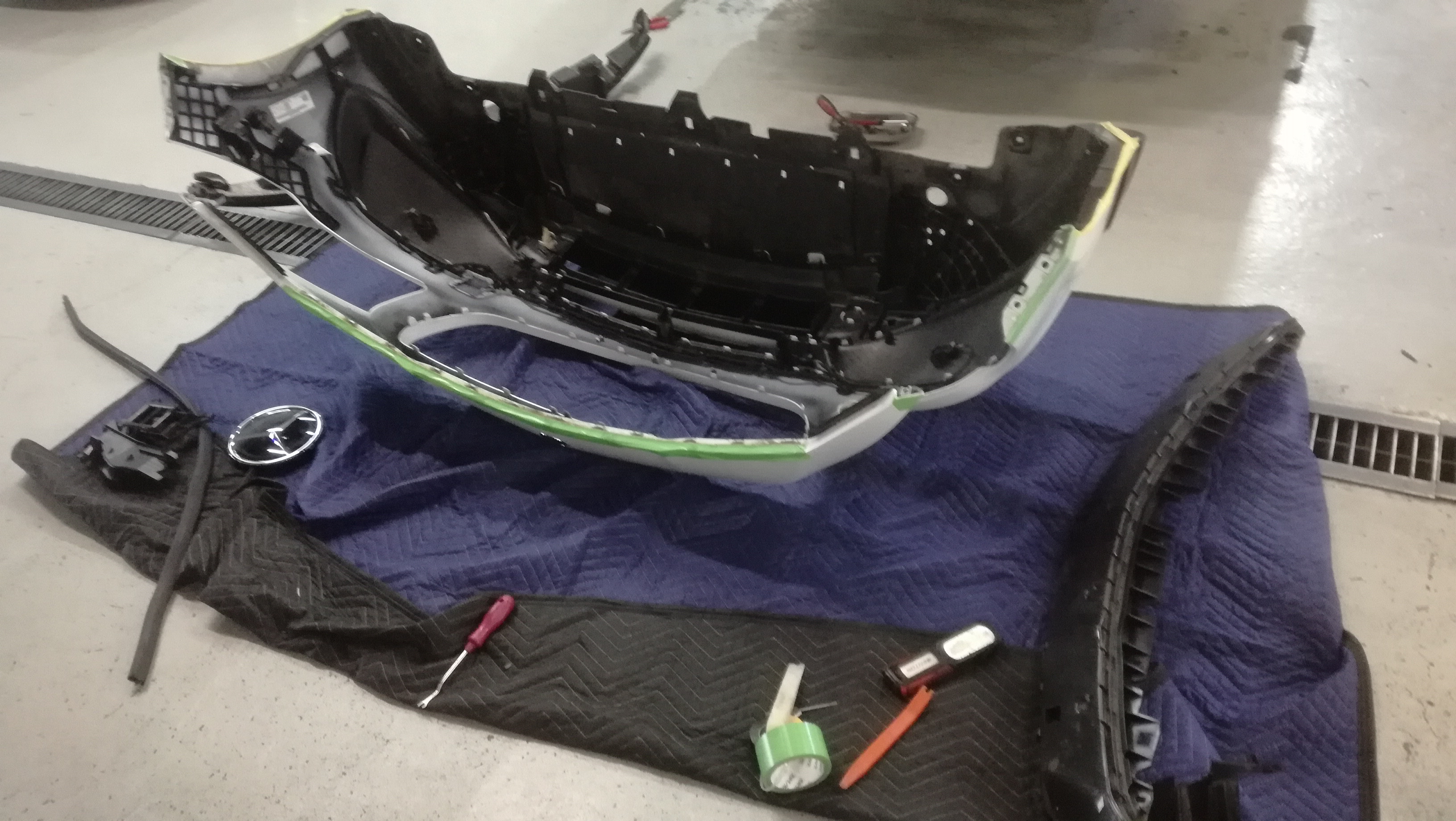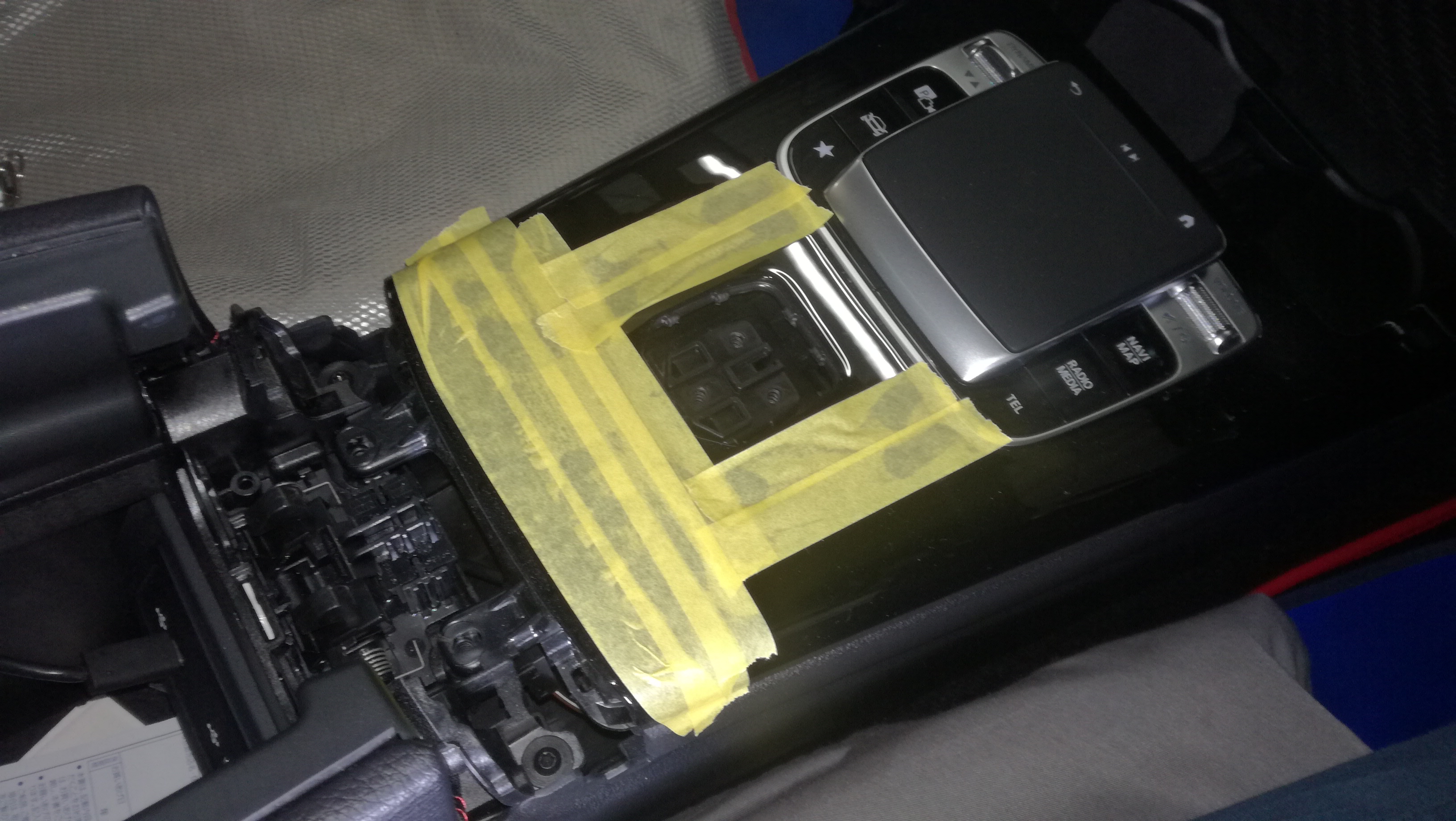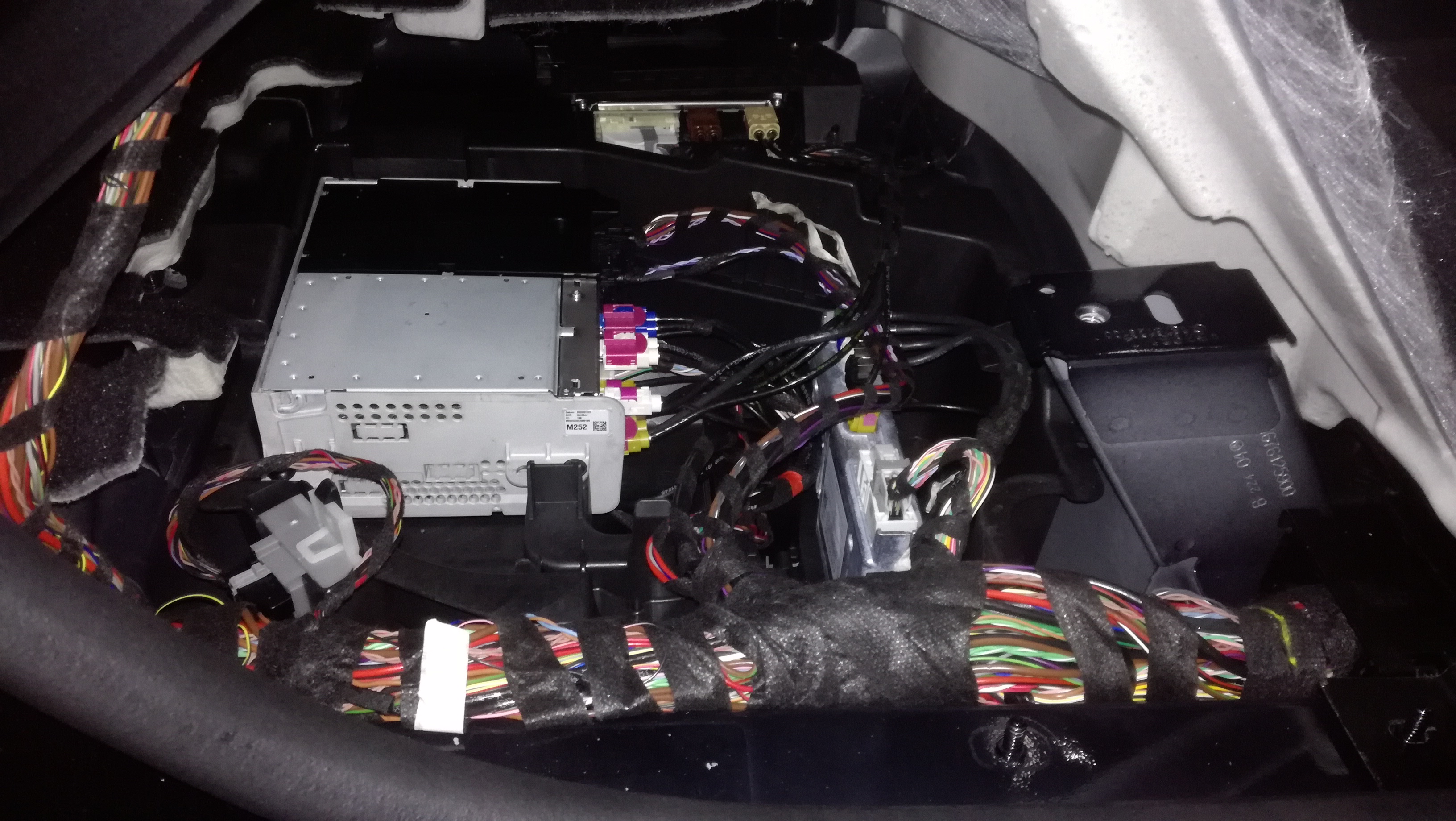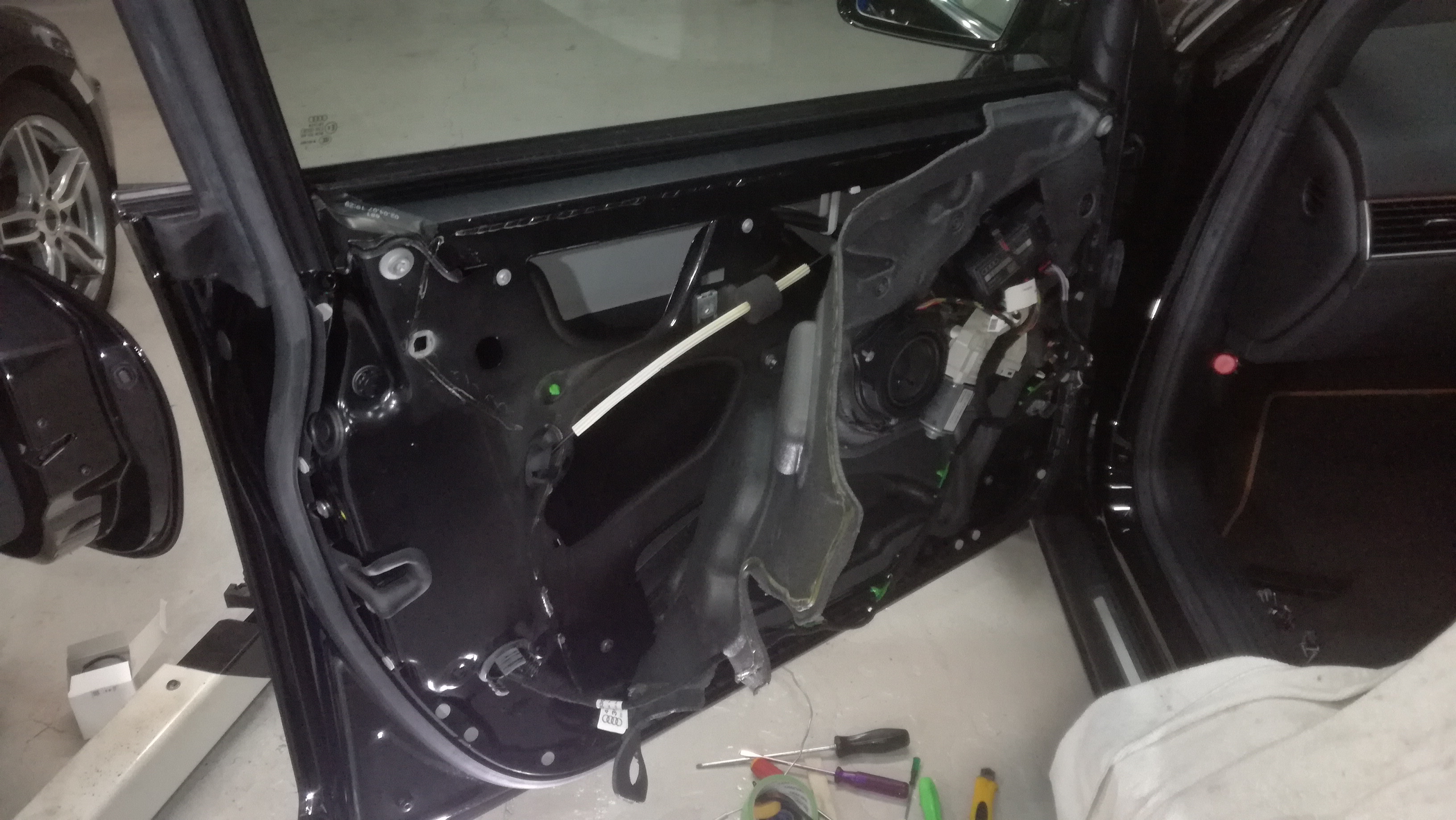 作業にあたり養生からスタート、右フロントシート下での作業が必要になるのでシートの脱着