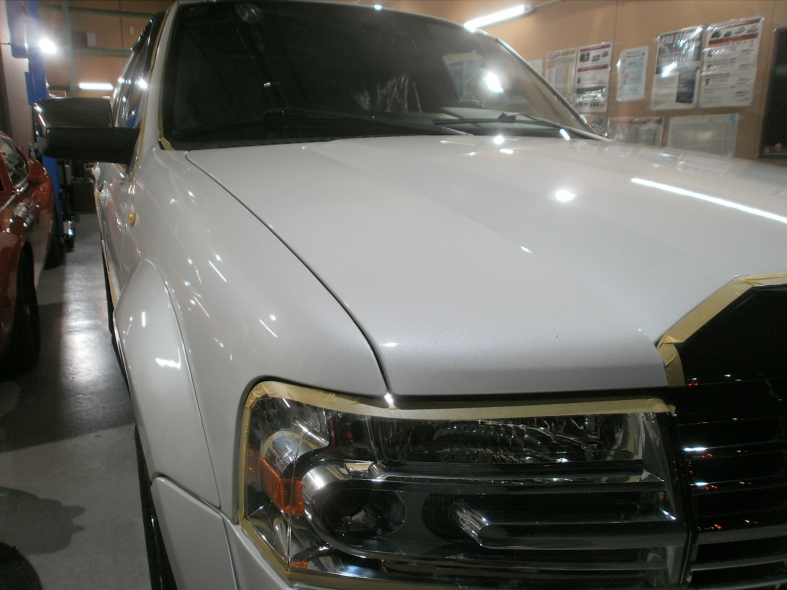 ヘッドライトのくすみ、黄ばみが出てきていたので、研磨作業です。