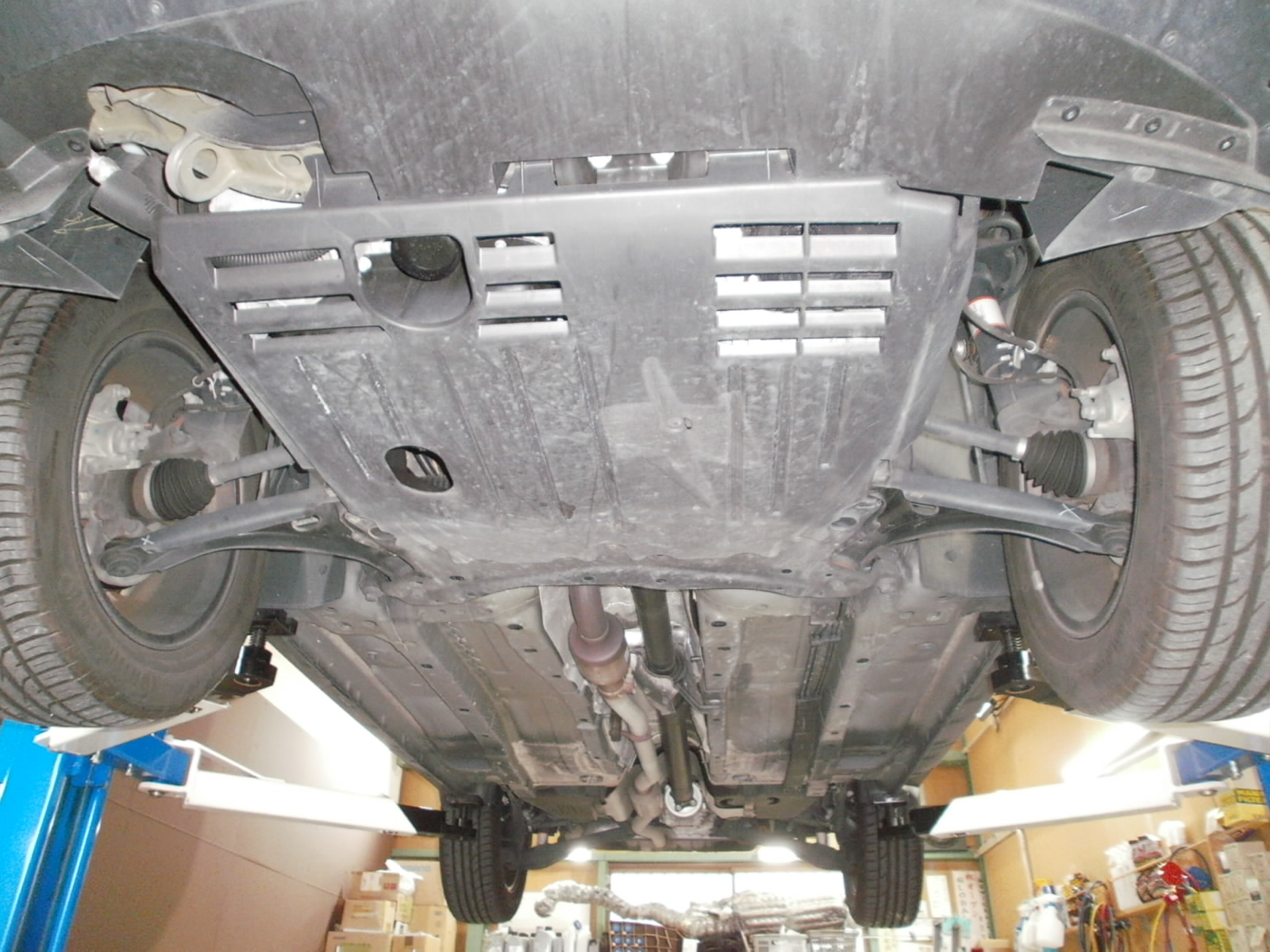 エンジン廻りからリフトアップして、下廻り・足廻りの点検です。