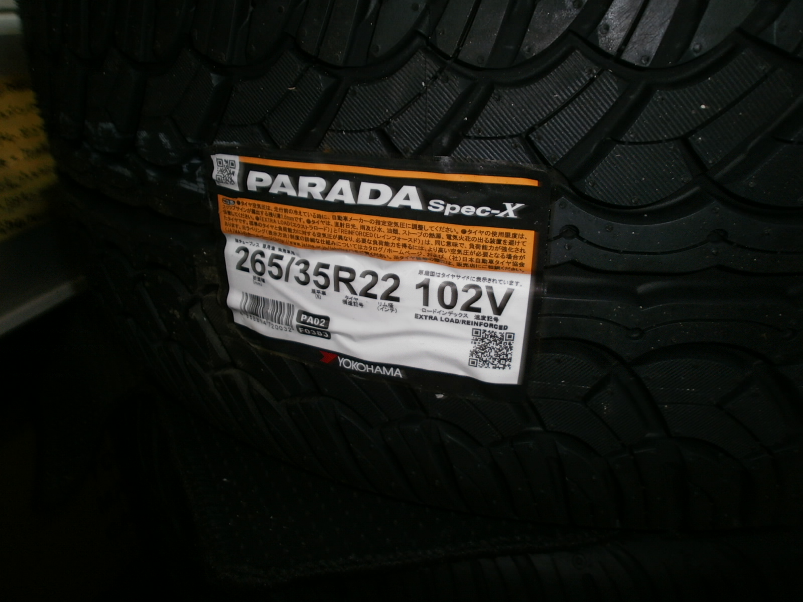 純正ホイールから、22インチAMGタイプのホイールに、タイヤはYOKOHAMA パラダ SPEC-X 265/35R22を装着。