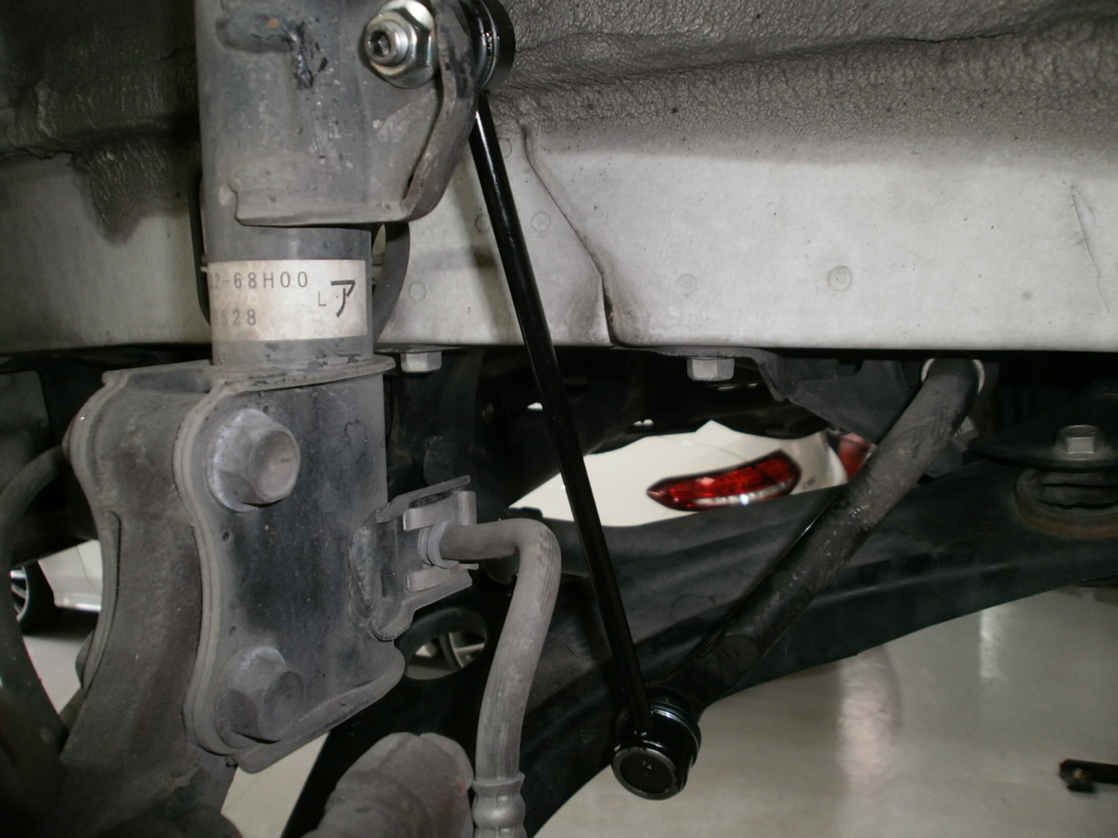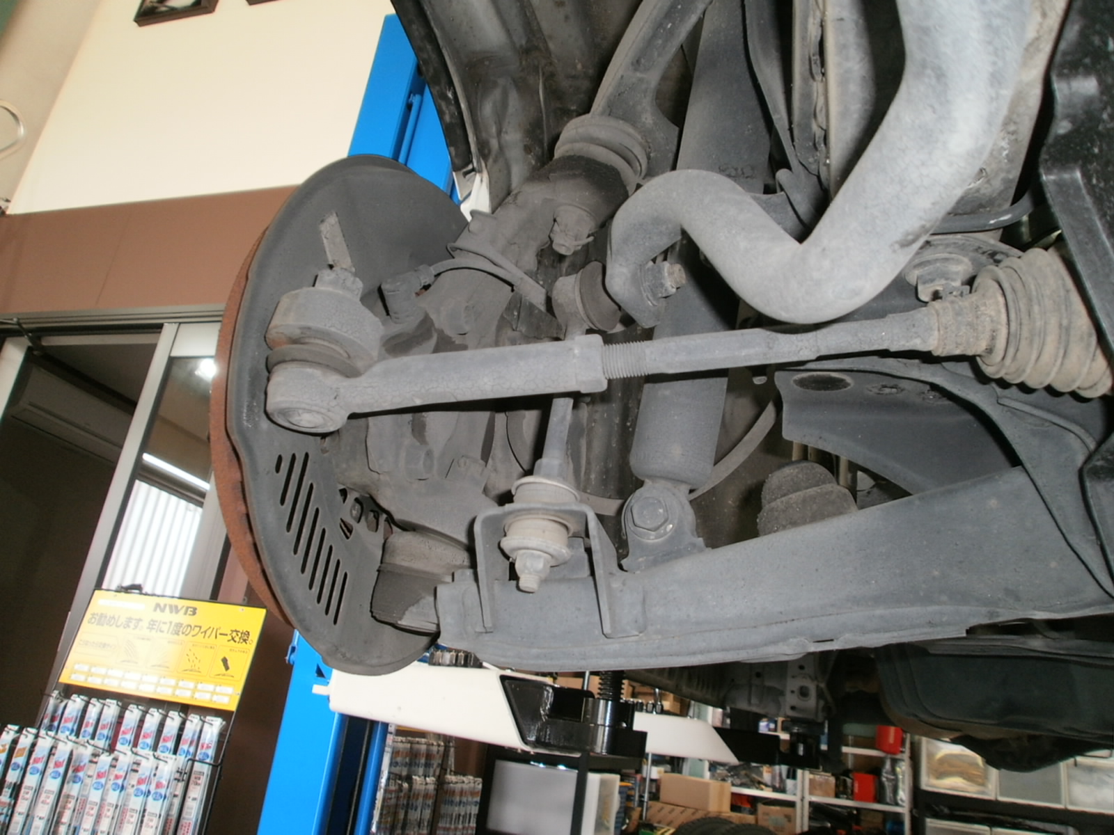 左フロントスタビライザリンクにガタがありましたので、部品交換させていただきました。