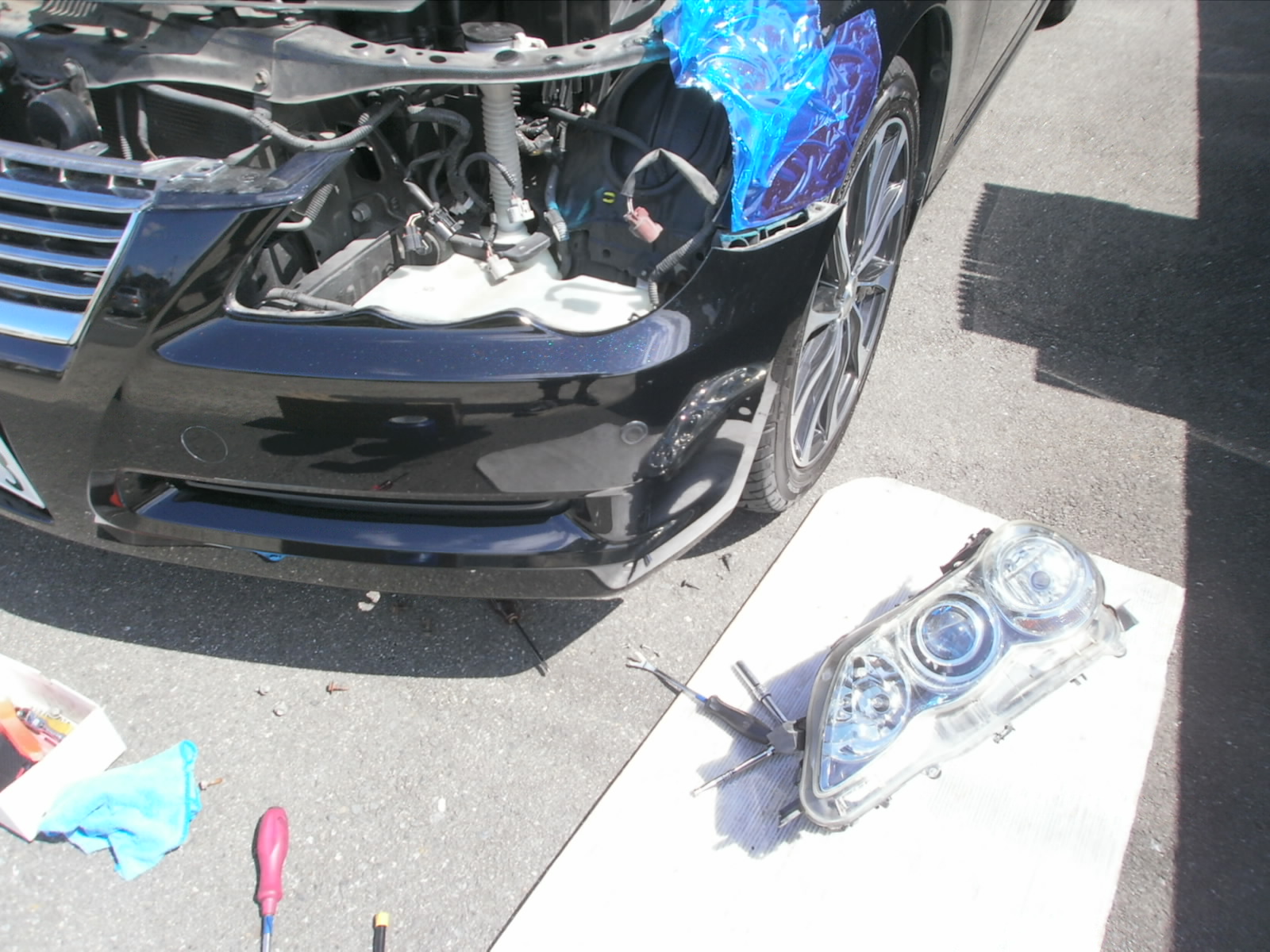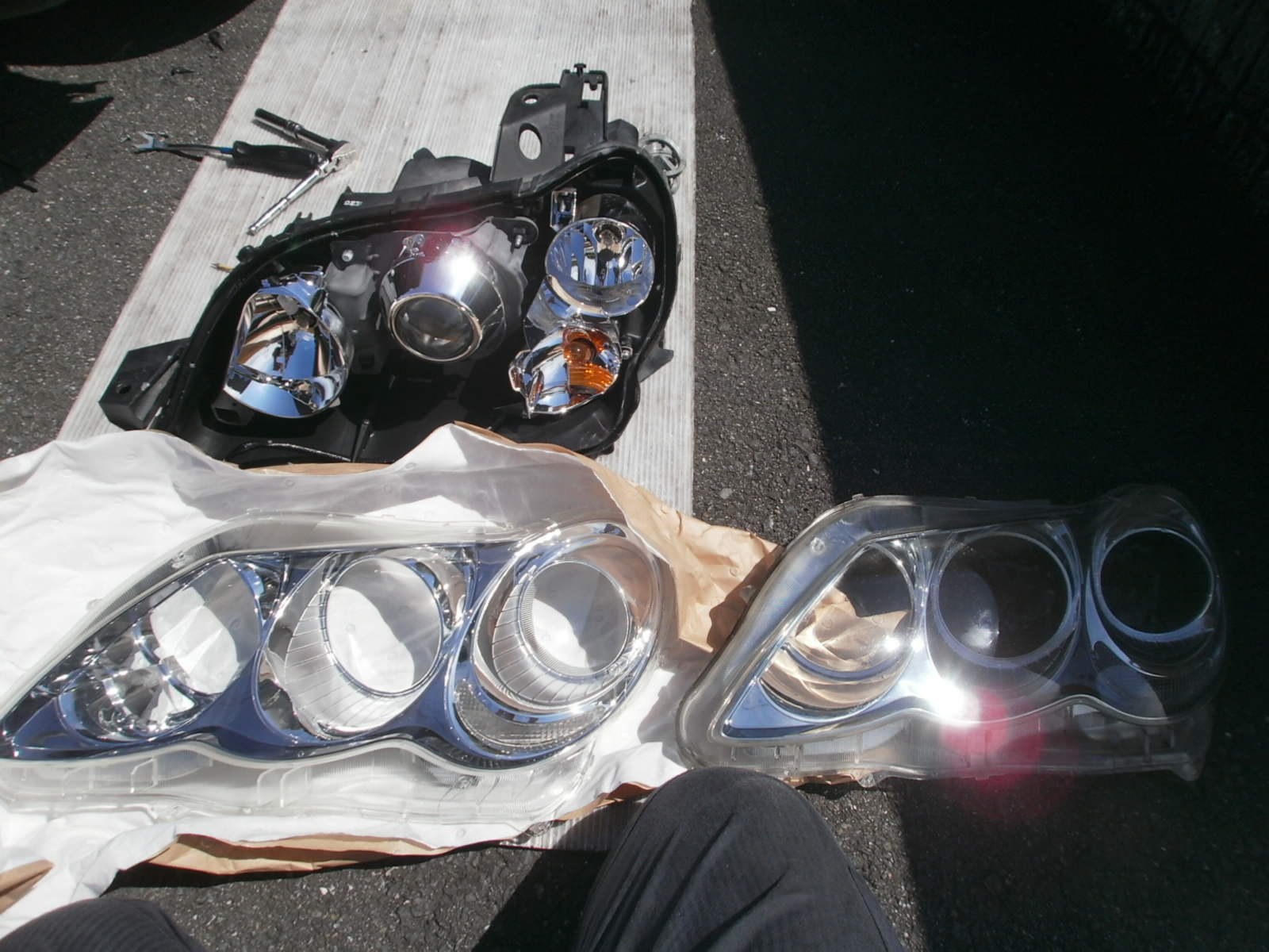 以前、右のヘッドライトレンズを黄ばみと劣化があった為、交換され、今回、左も綺麗なレンズに交換したい。との事で部品オーダーさせていただき、入荷にあわせ作業させていただきました。