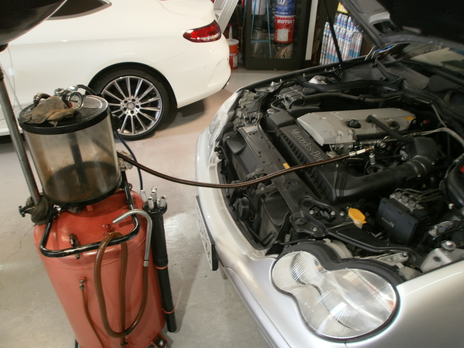 I様 C180 シートレールカバー取付、エンジン洗浄剤RECS(レックス)施工にてご入庫です。
