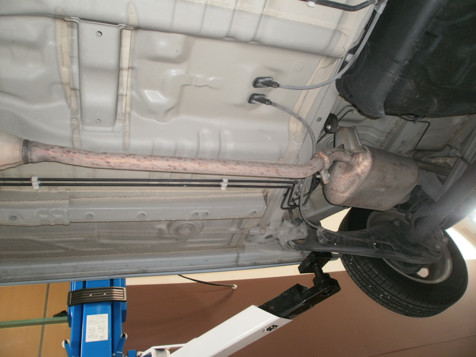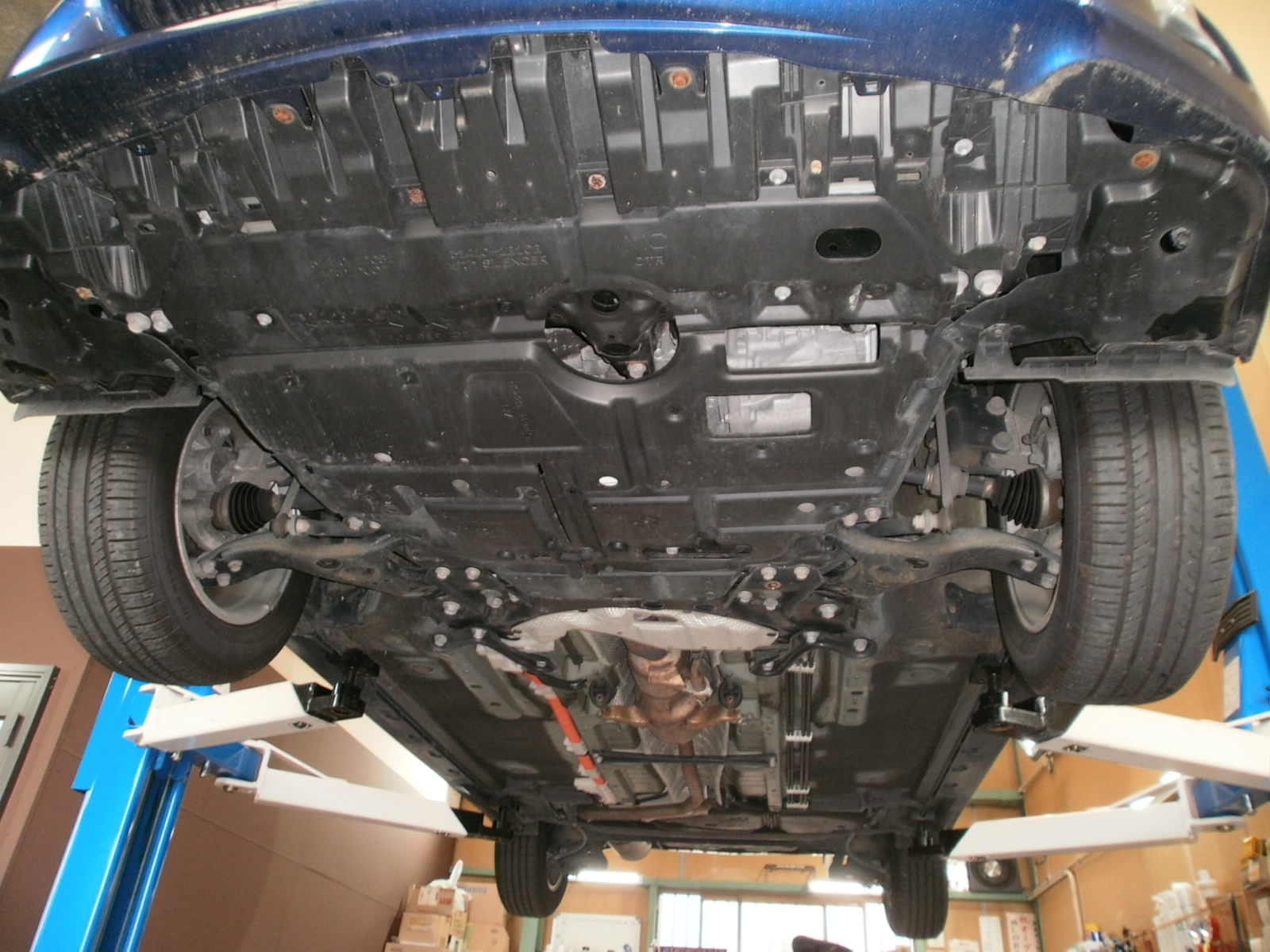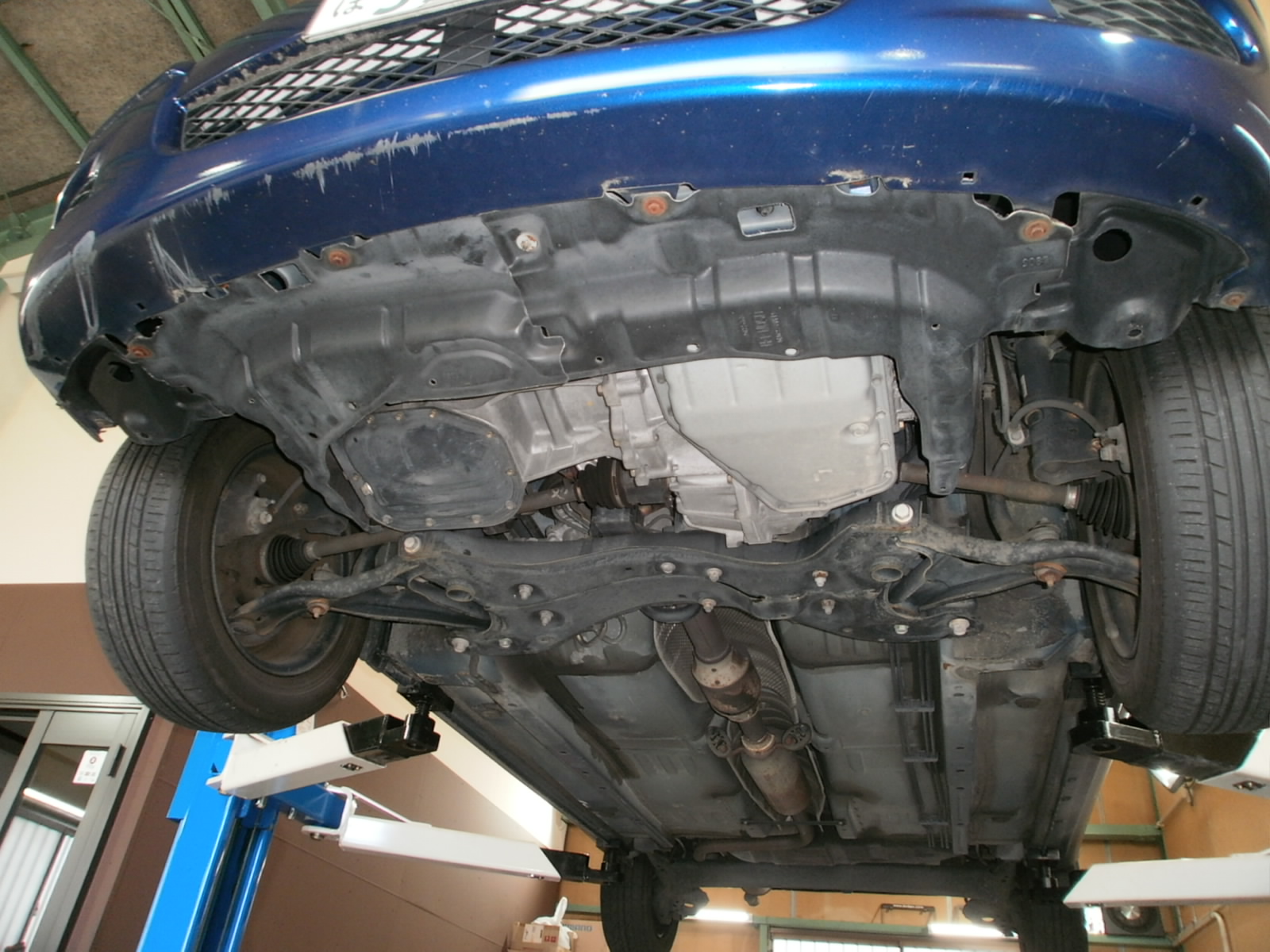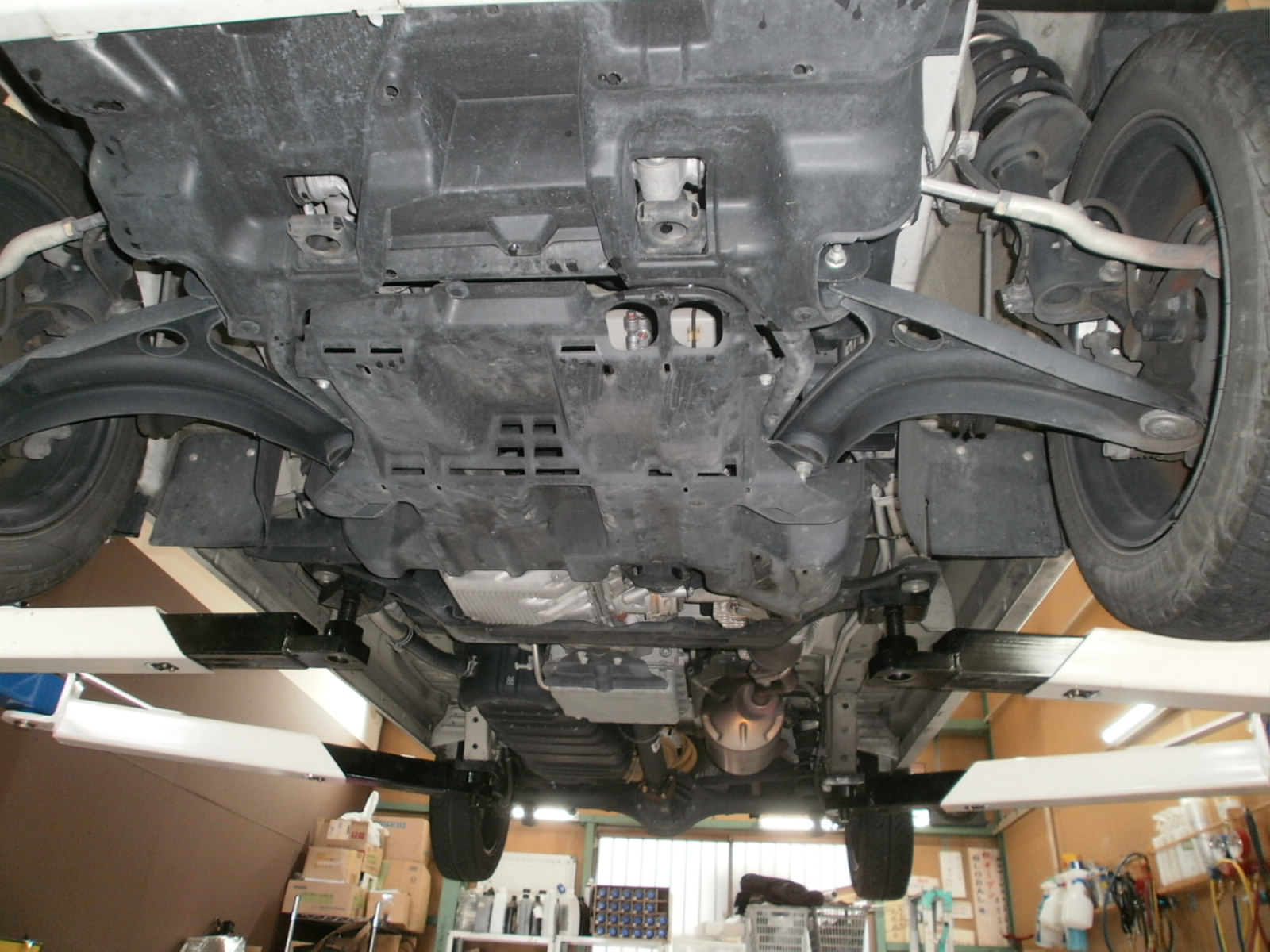 点検開始~リフトアップして下から見ていきます。