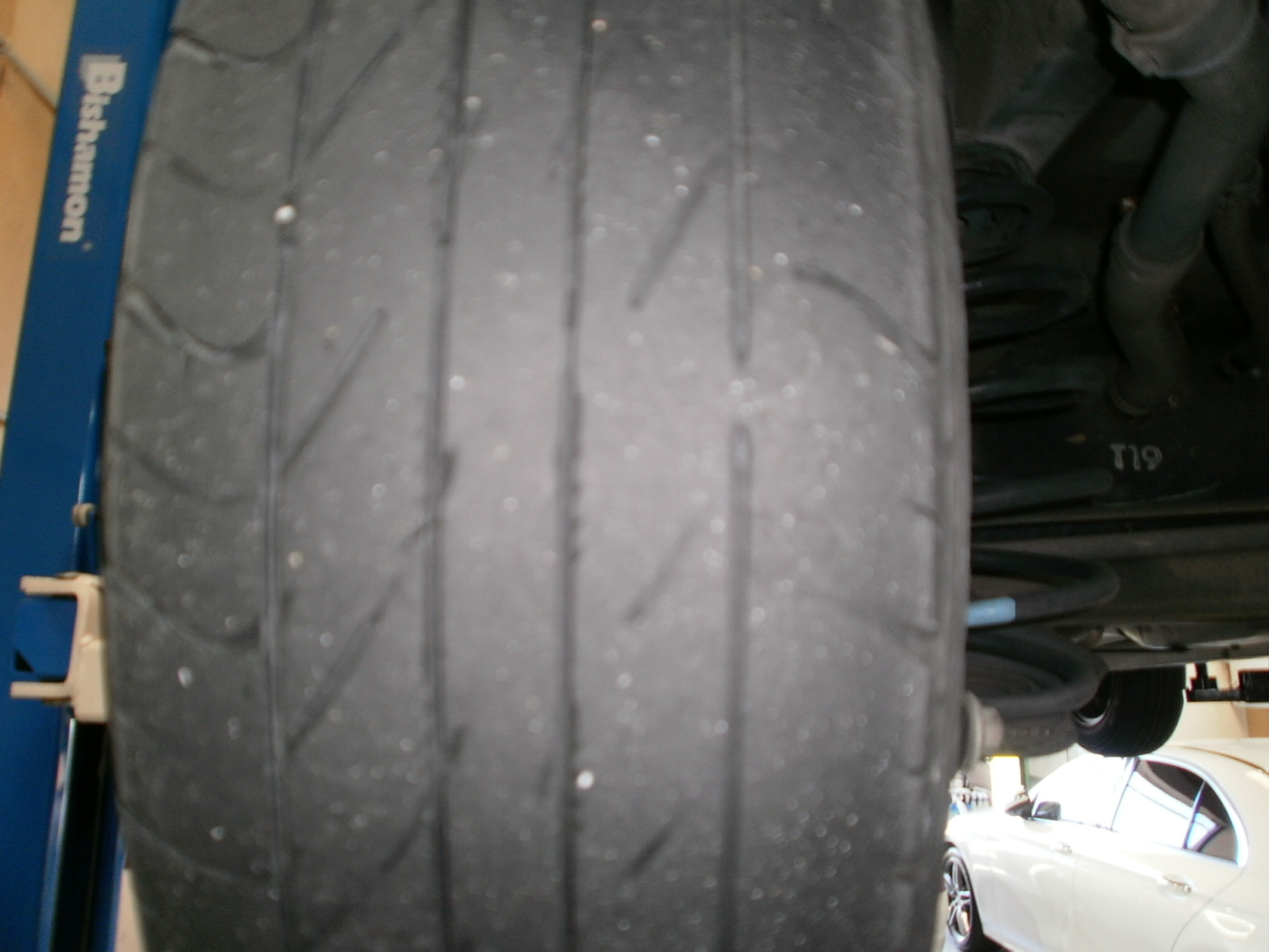 I様 W203 足廻り異音にて点検ご入庫です。