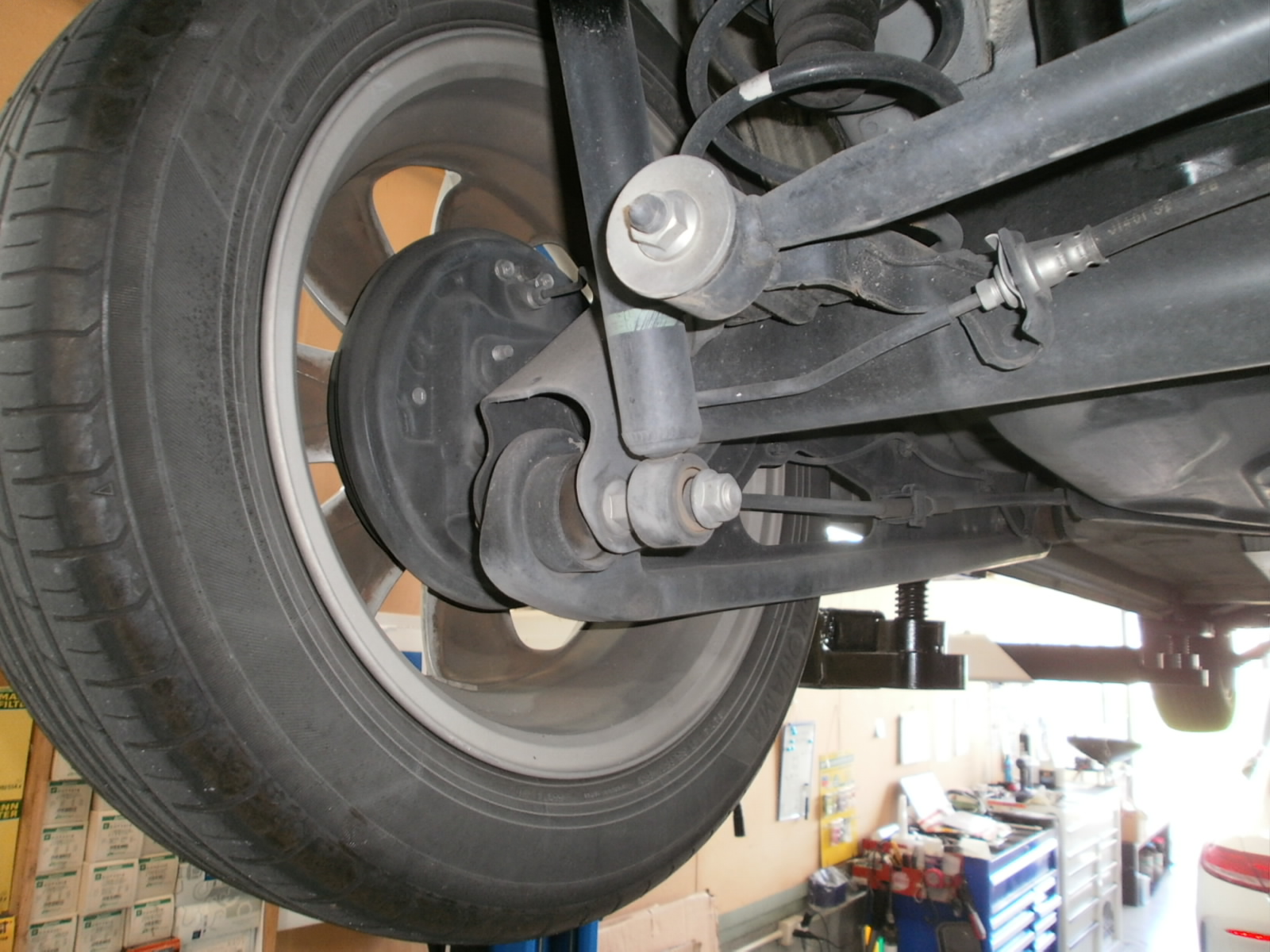 リフトアップし、異音の原因をご説明させていただきました。交換必要部品をオーダーし、近日再ご入庫していただき、修理させていただきます。 I様 ご入庫ありがとうございました!
