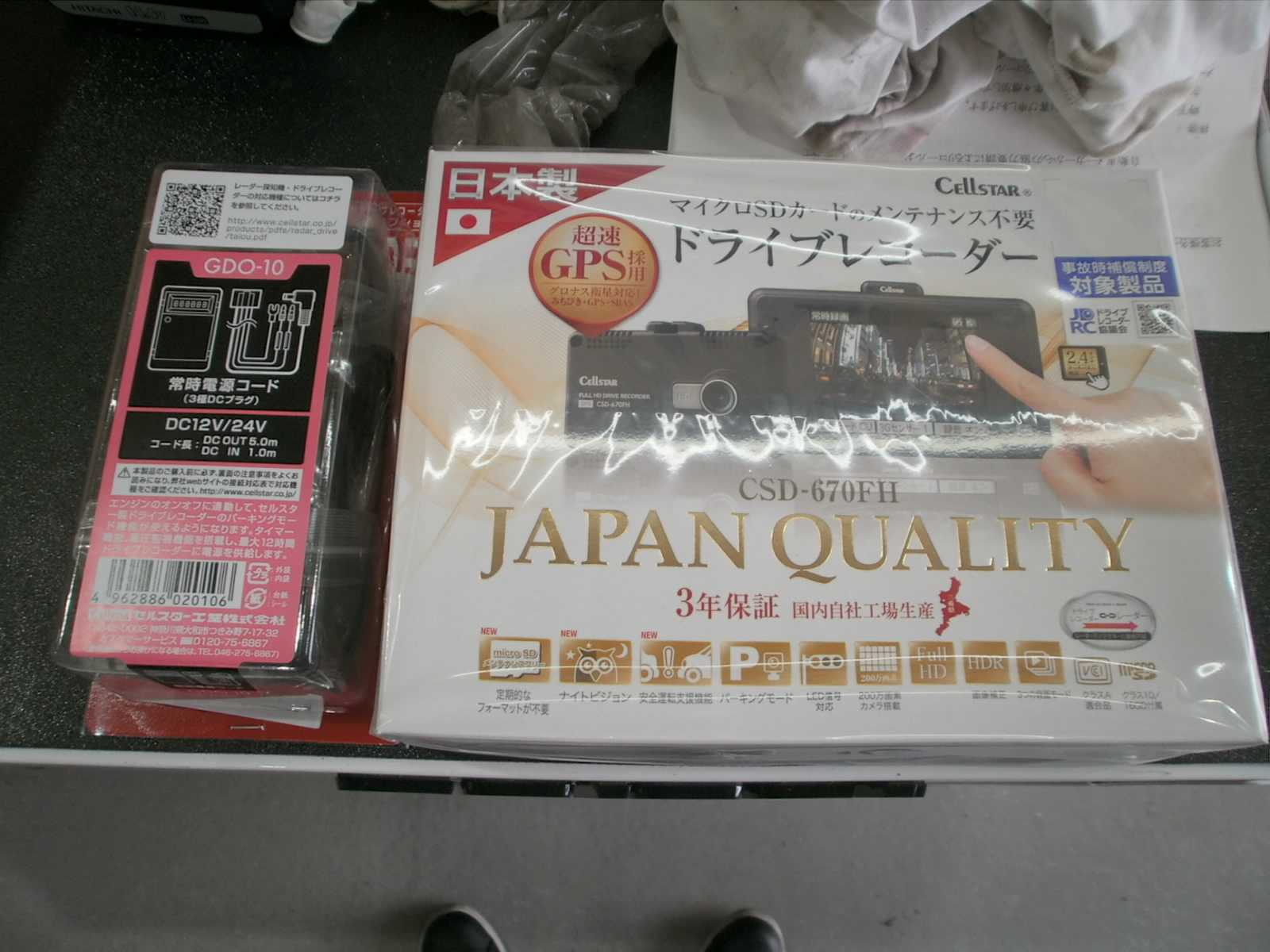 ドライブレコーダーです。事故や盗難、いざという時、必ず役立ってくれることでしょう!